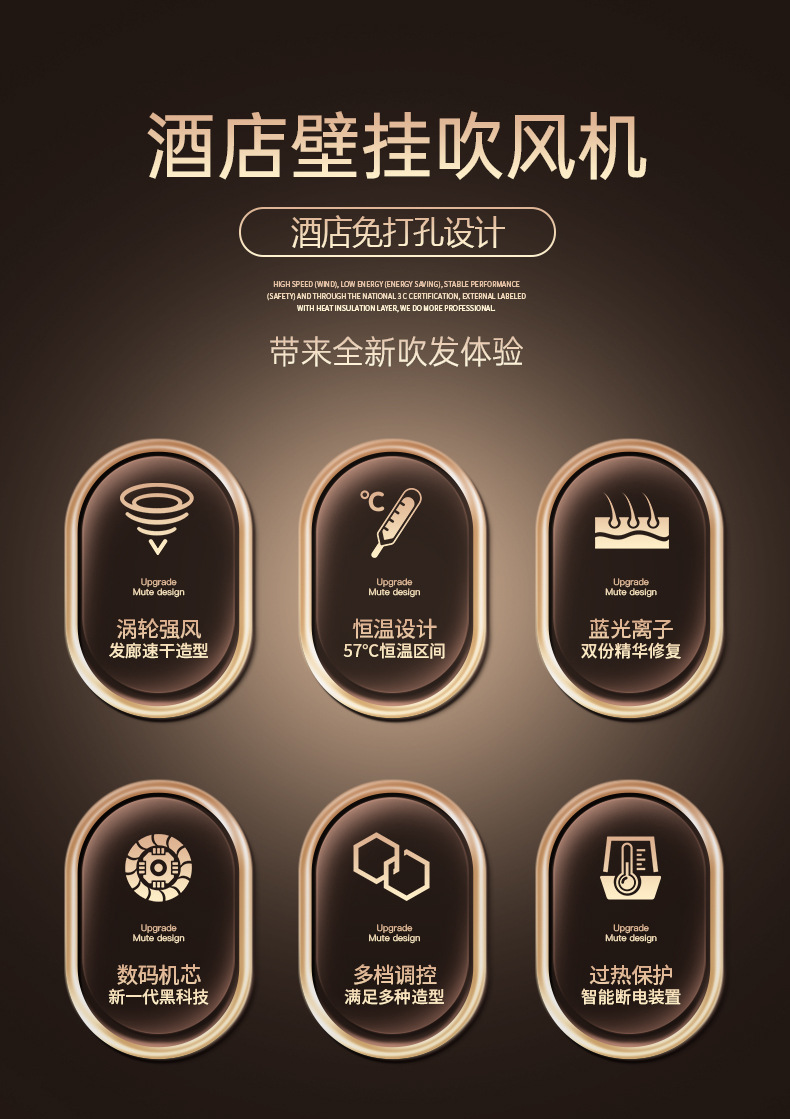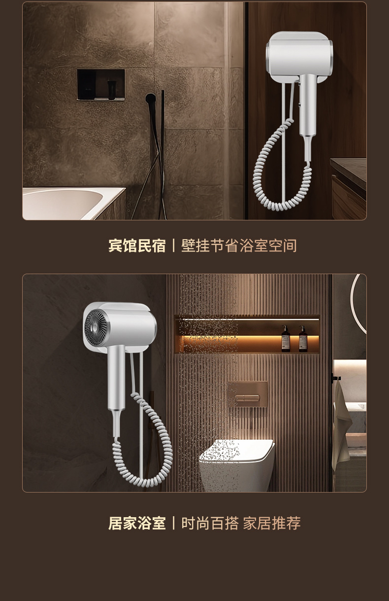 酒店宾馆免打孔挂壁吹风机浴室家用大功率电吹风宿舍发廊吹风筒