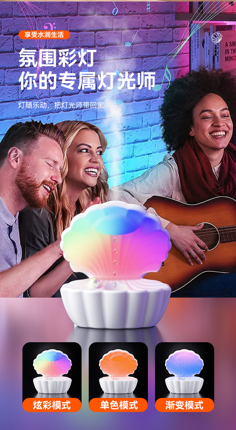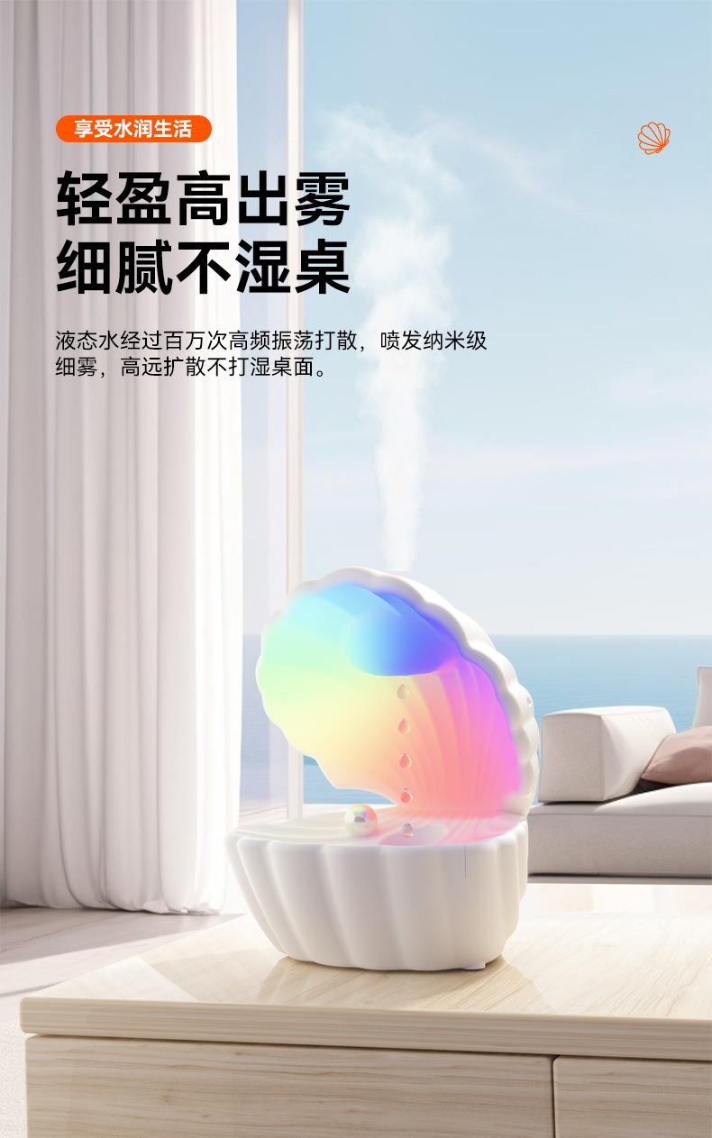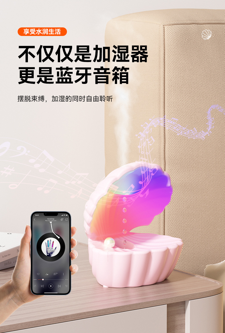 新款贝壳加湿器反重力超声波雾化大雾量家用办公室蓝牙音箱加湿器
