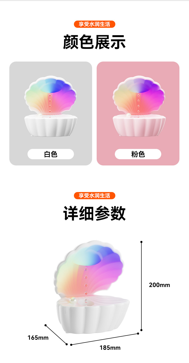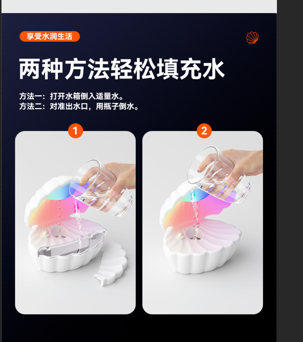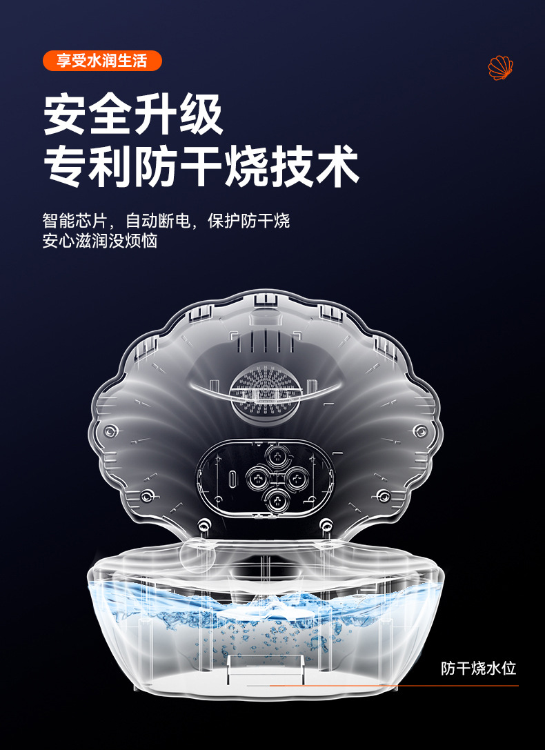 新款贝壳加湿器反重力超声波雾化大雾量家用办公室蓝牙音箱加湿器