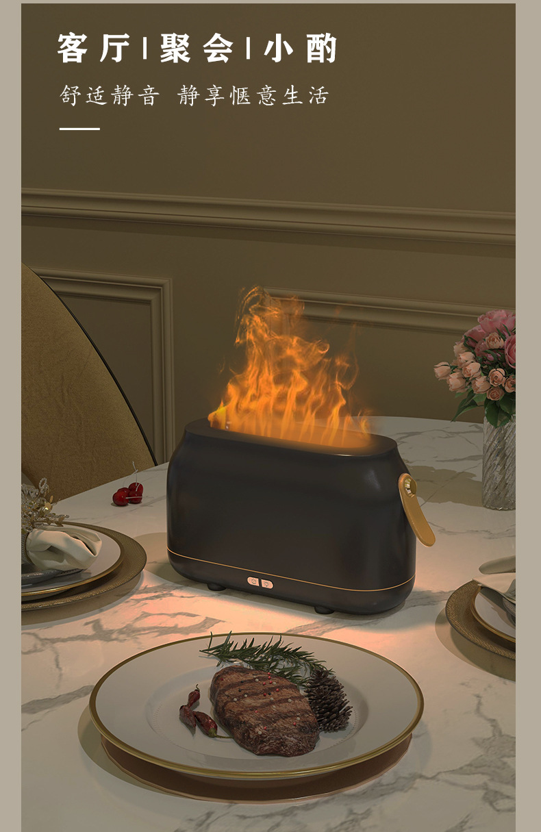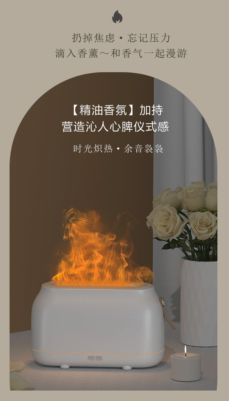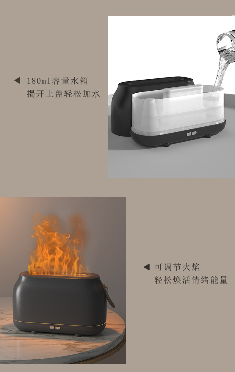 跨境新款小型三彩火焰香薰机usb充电桌面火焰加湿器家用办公室