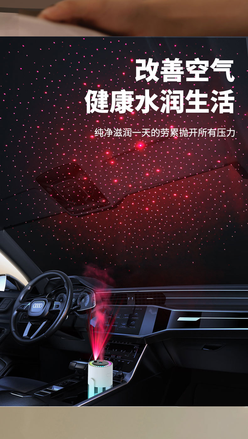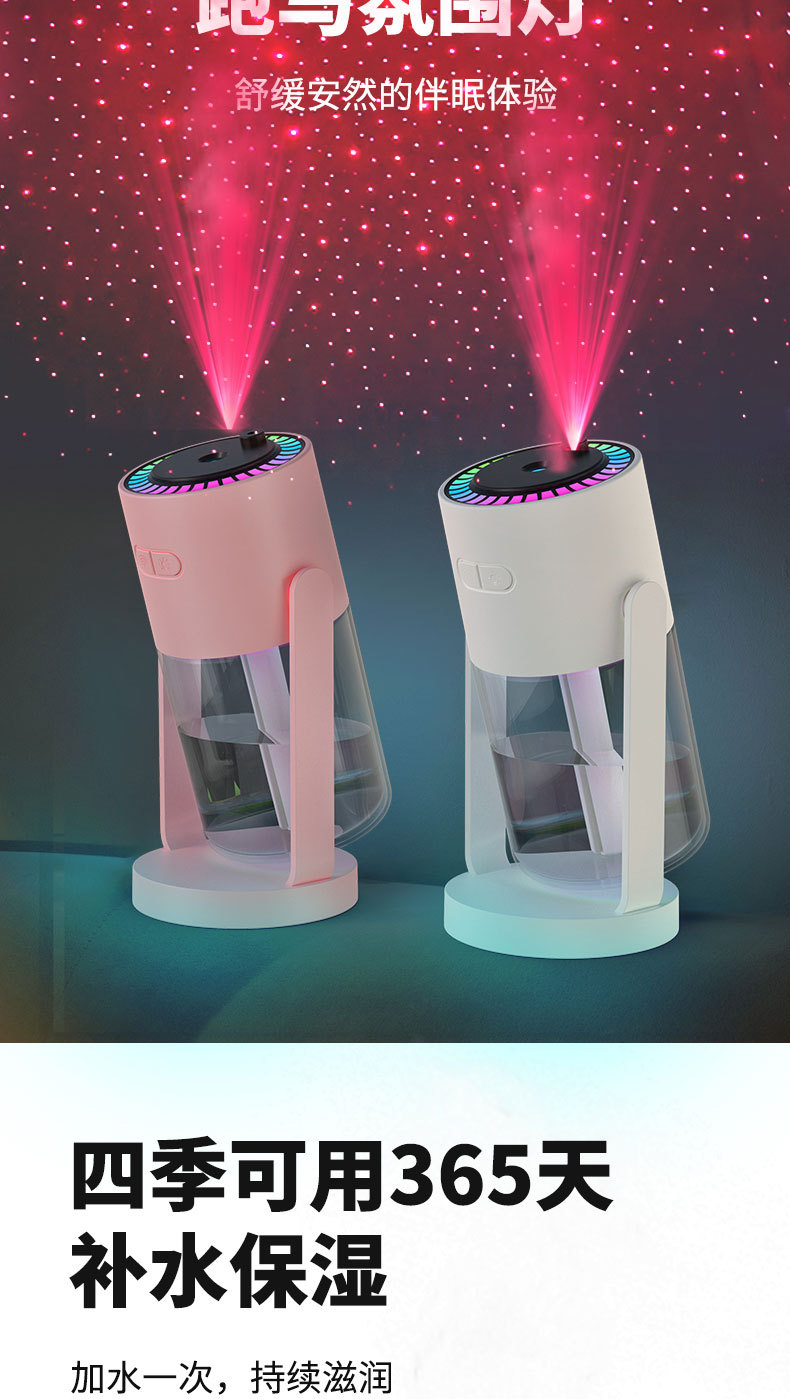 跨境新款投影星空顶摇头加湿器 USB创意补水桌面空气车载加湿器