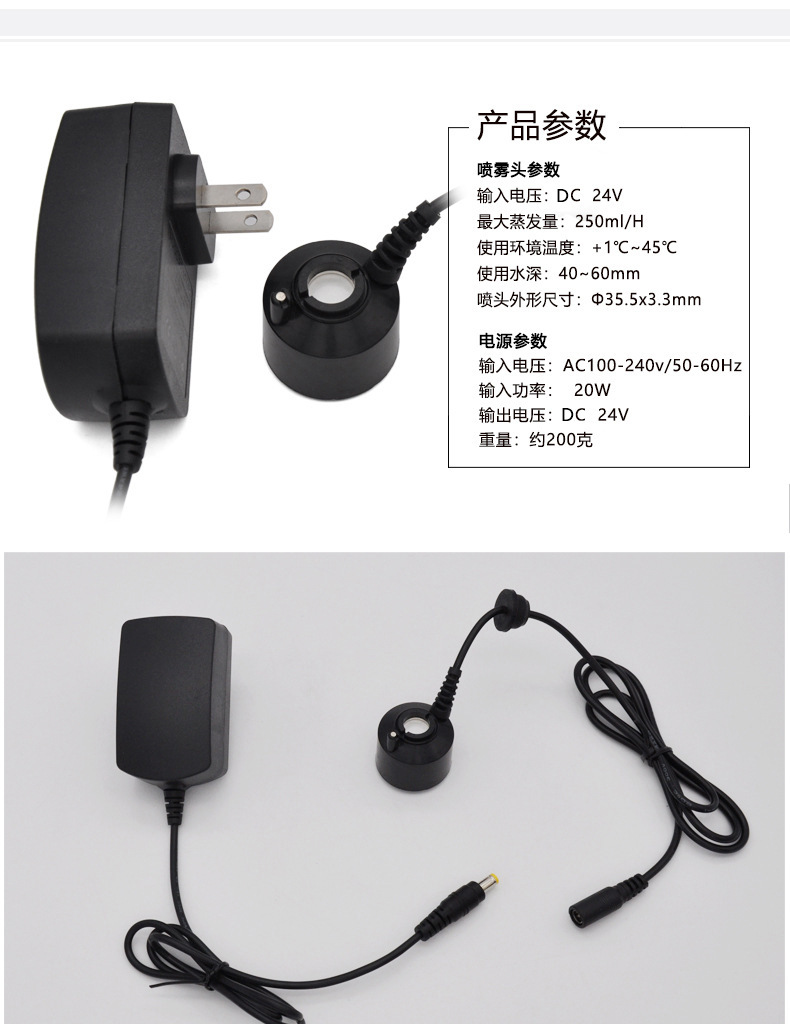 厂家直供小雾化头雾化器电子无灯迷你3.6CM塑料头16MM空气净化器