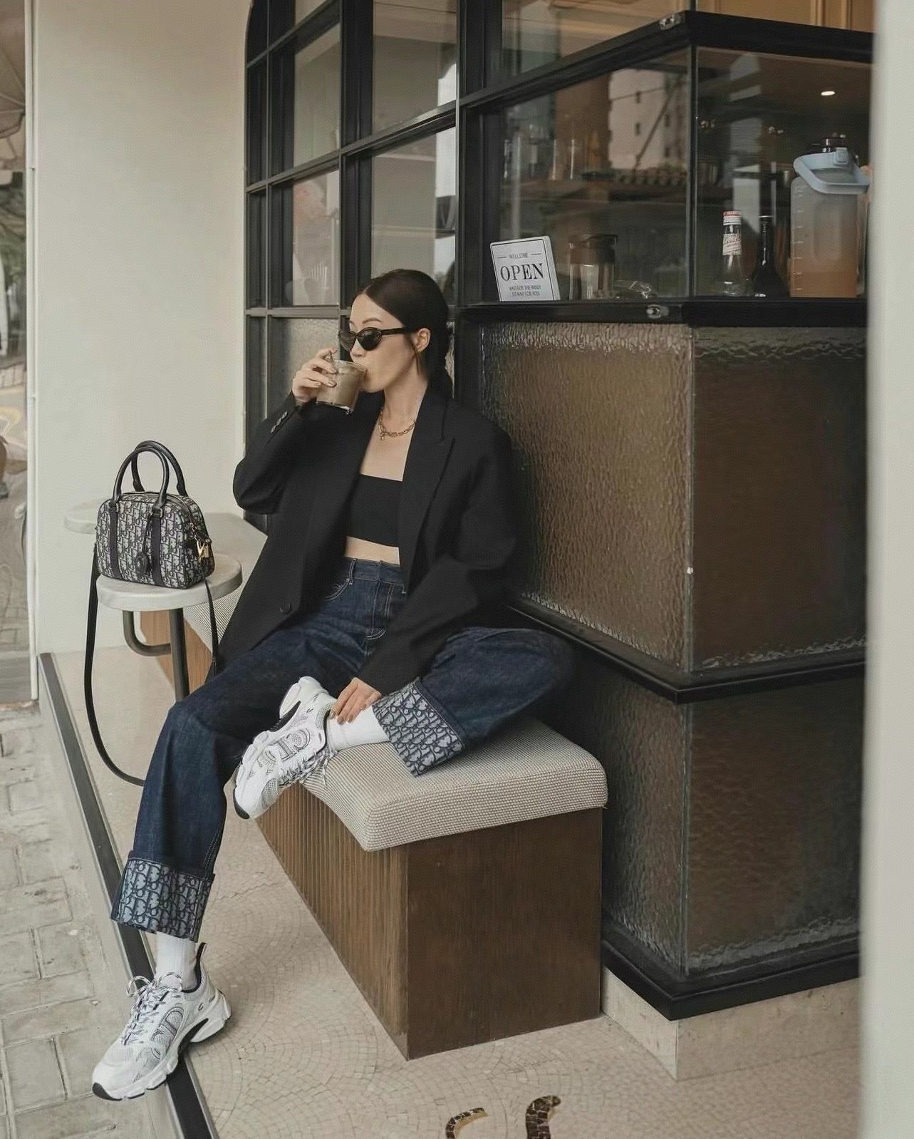 顶版D家新款拼色刺绣字母厚底老爹鞋休闲透气网面时尚运动女鞋
