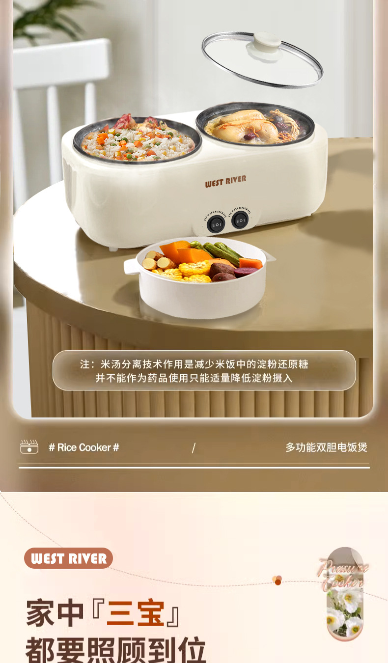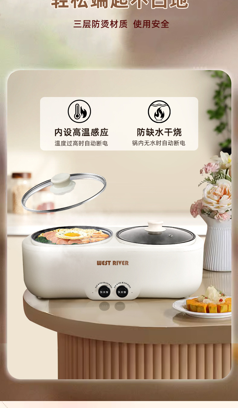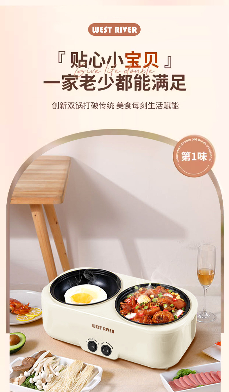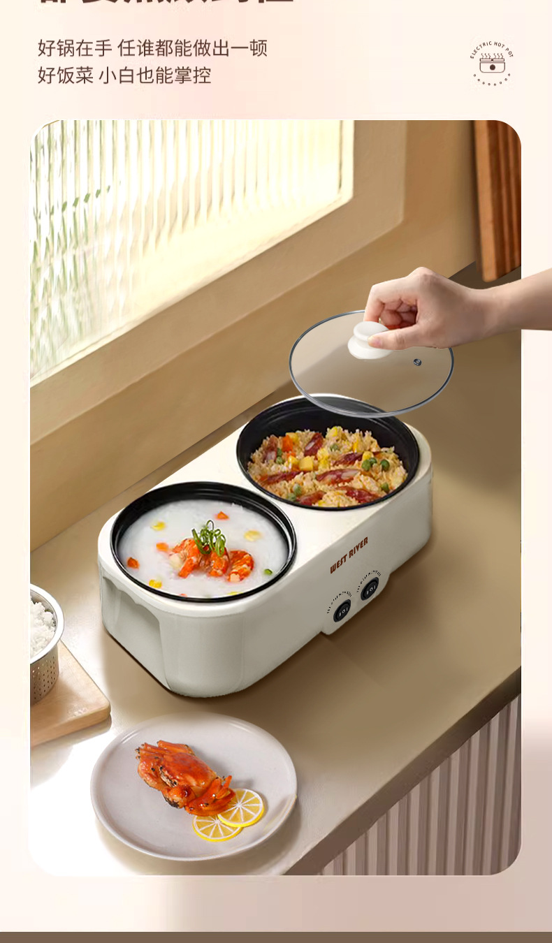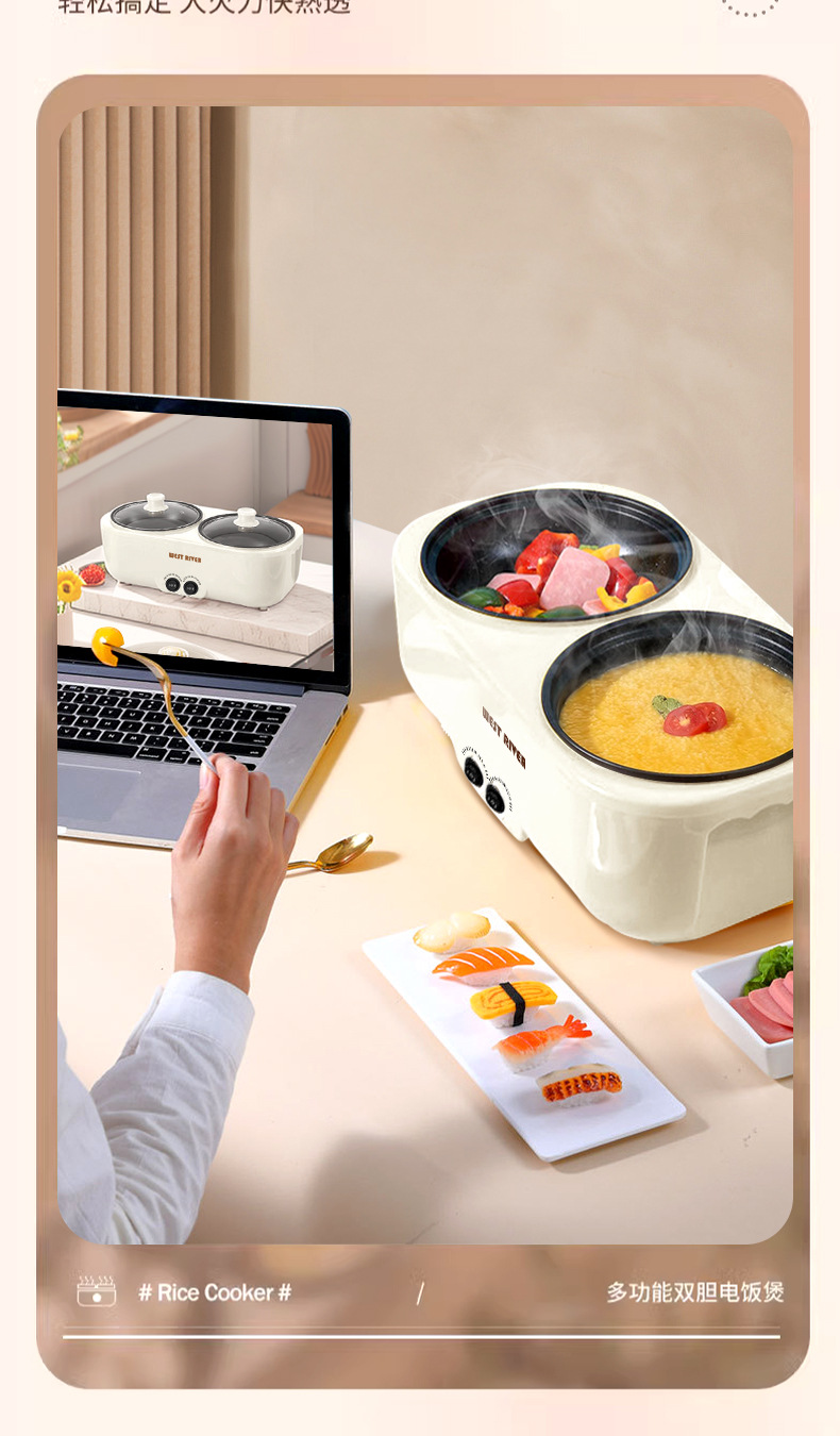 双胆电饭煲跨境专供多功能小电煮锅鸳鸯电火锅家用电热蒸煮一体锅