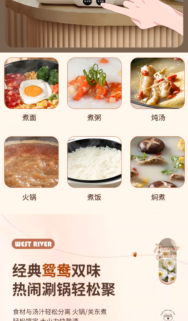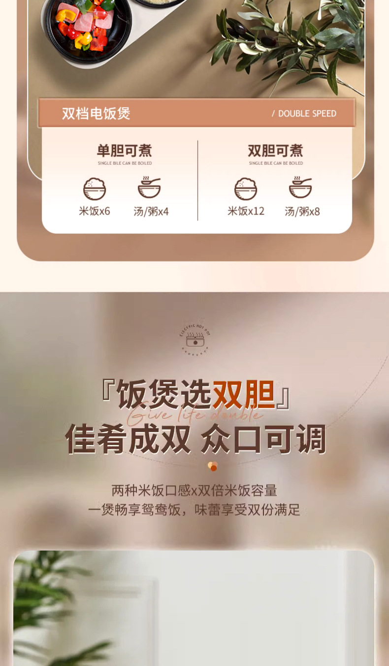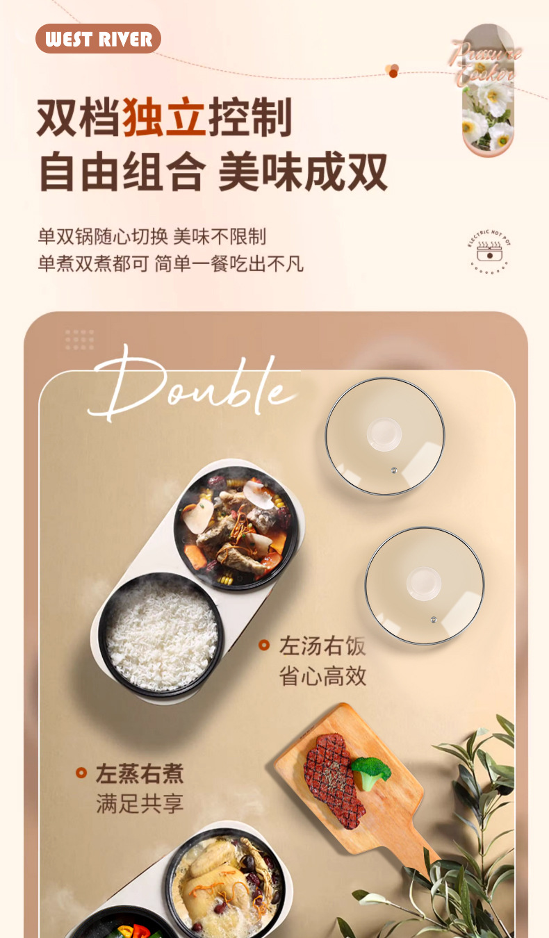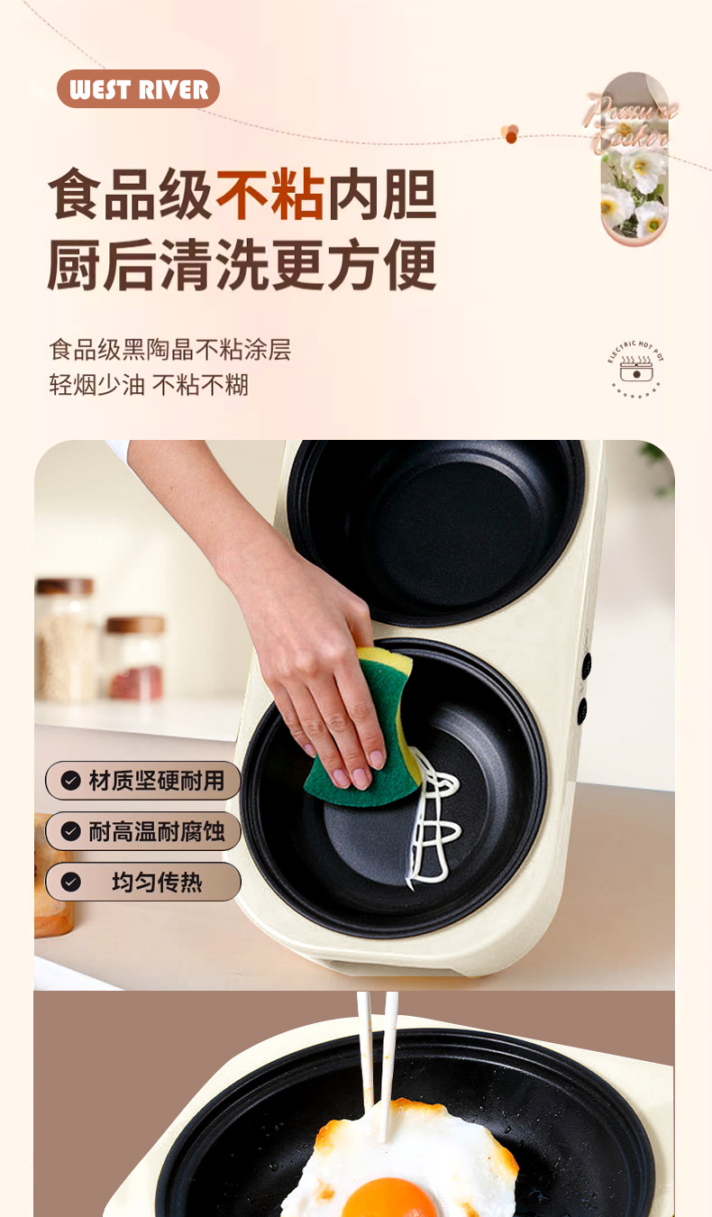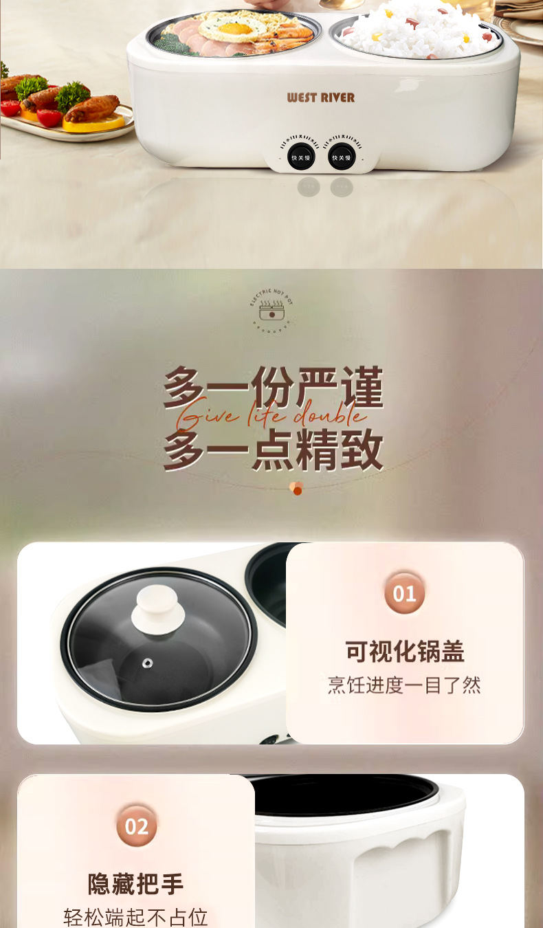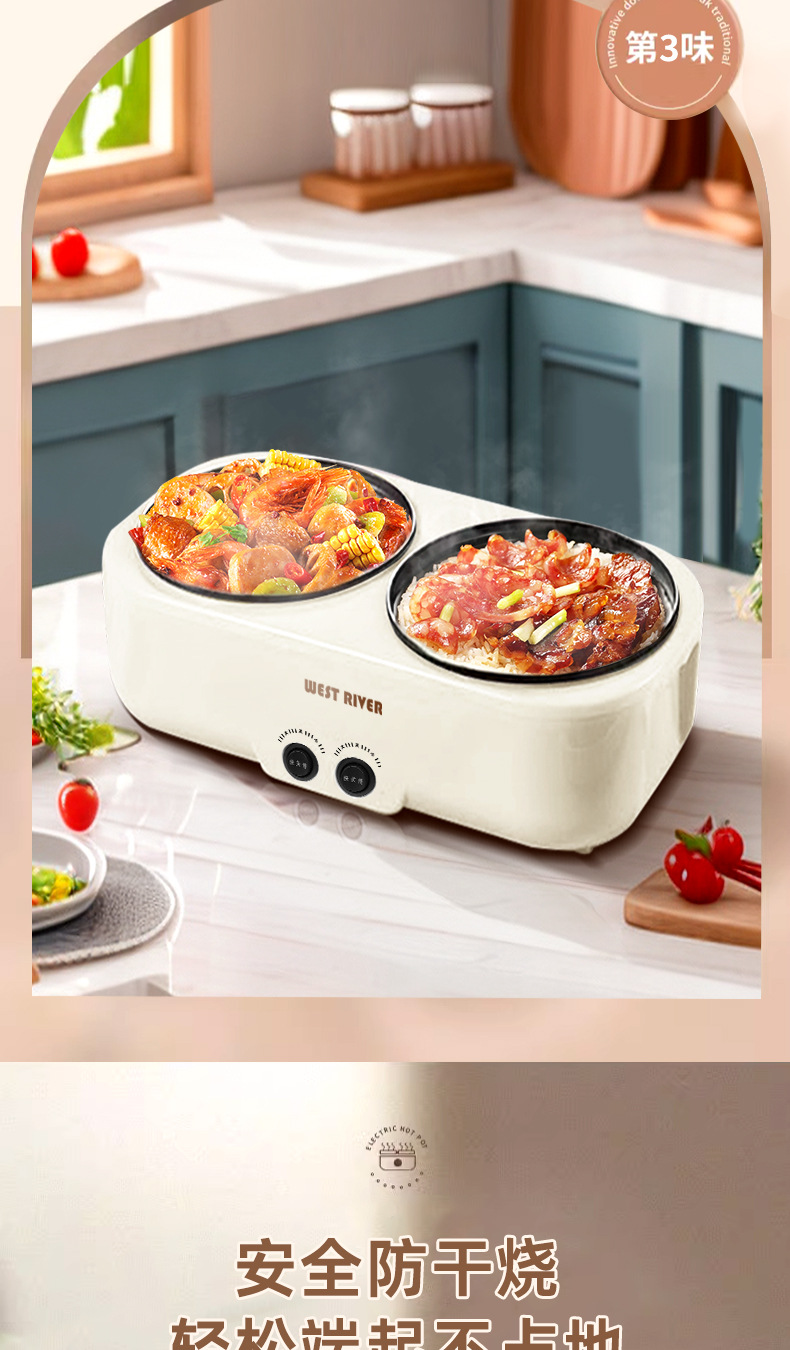双胆电饭煲跨境专供多功能小电煮锅鸳鸯电火锅家用电热蒸煮一体锅
