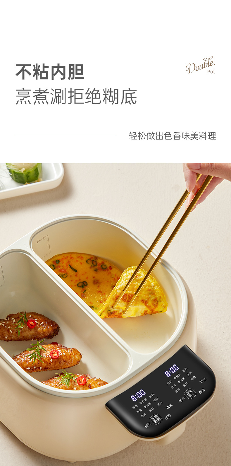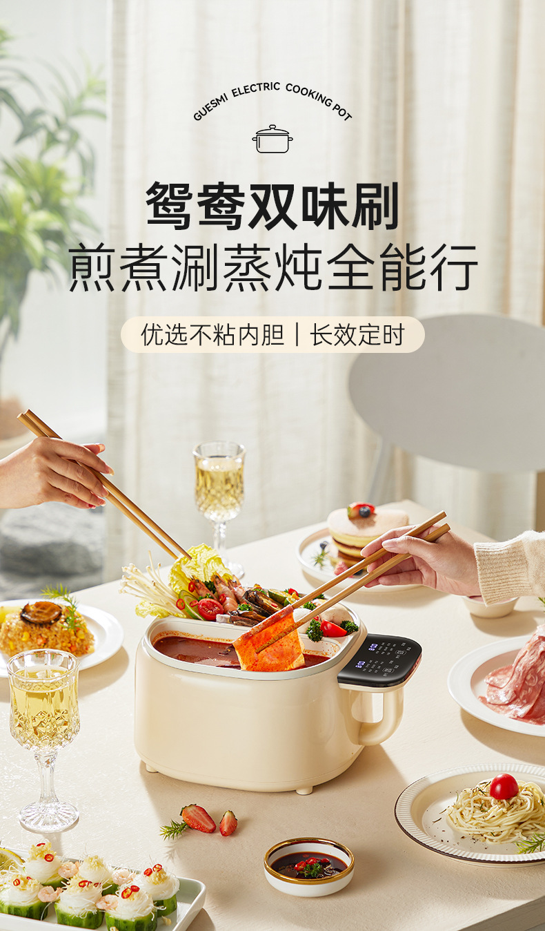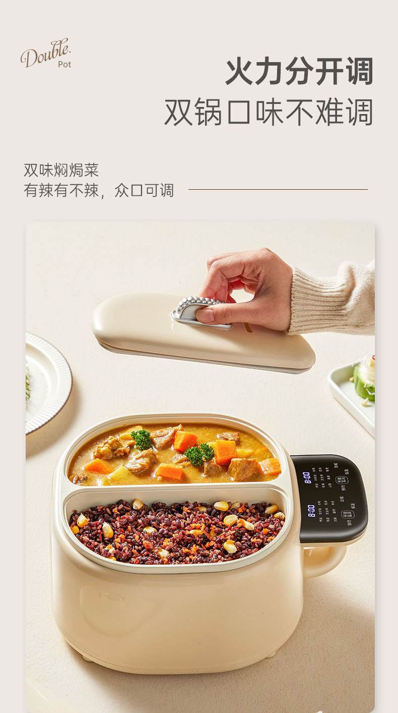 现货跨境电饭锅双胆家用电煮锅鸳鸯分体式多功能煎炒电热锅不粘锅