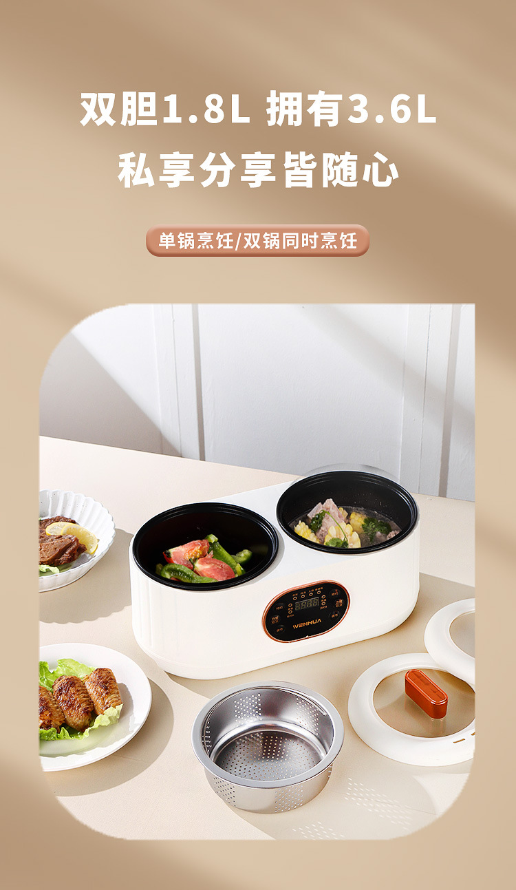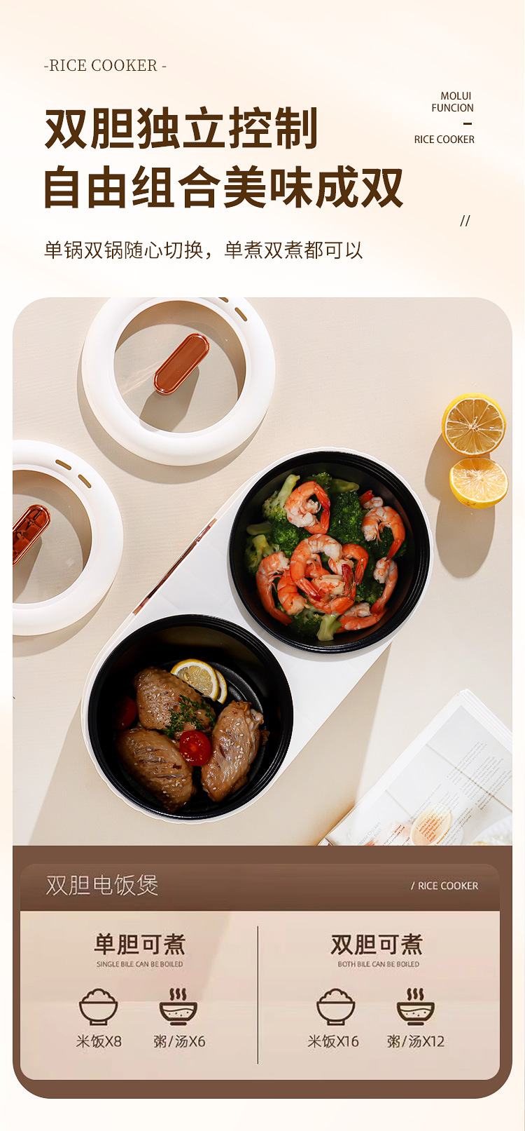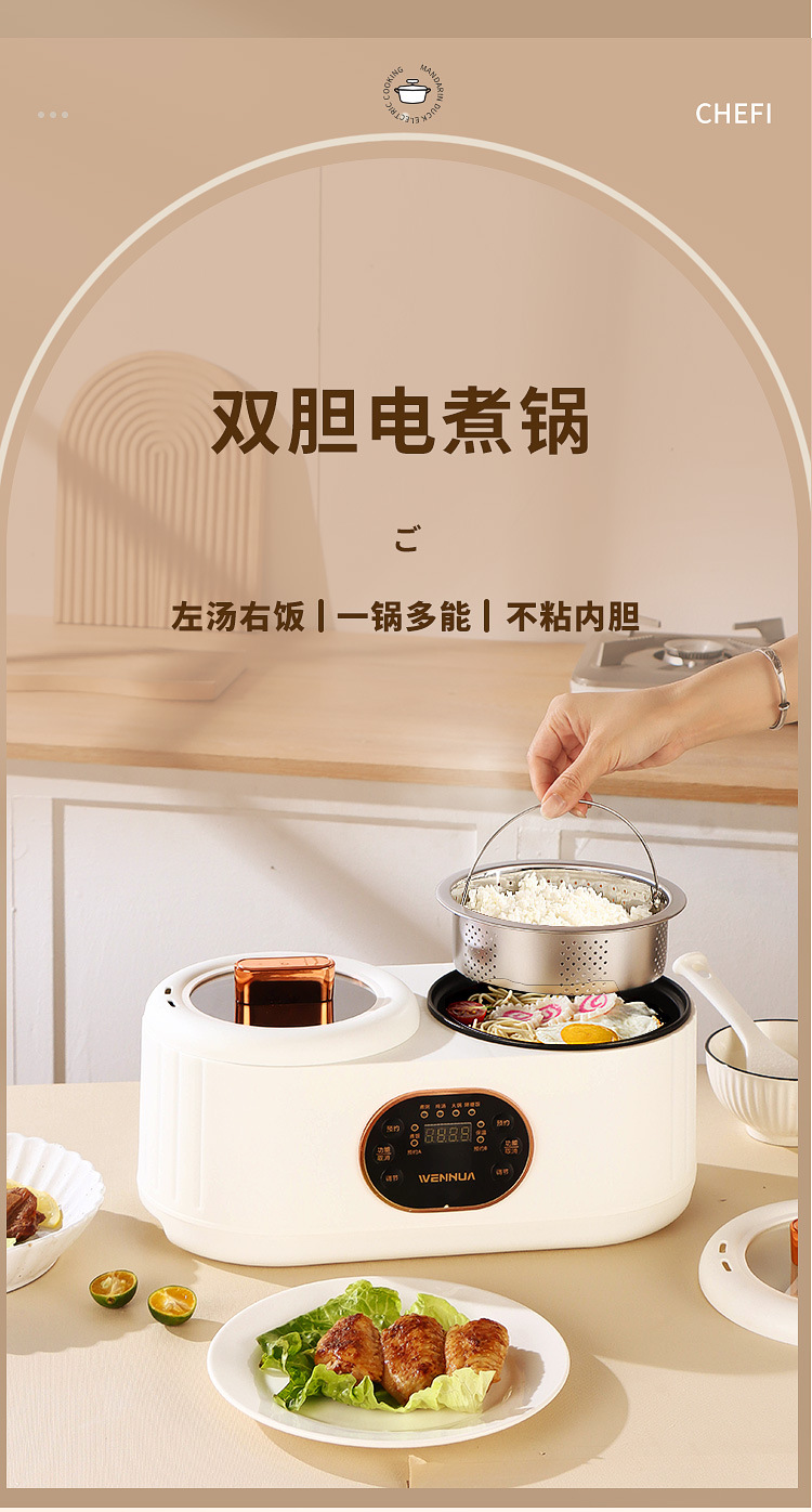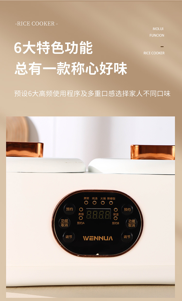跨境双胆电饭煲家用多功能电煮锅可预约蒸煮智能电饭锅一体不粘锅
