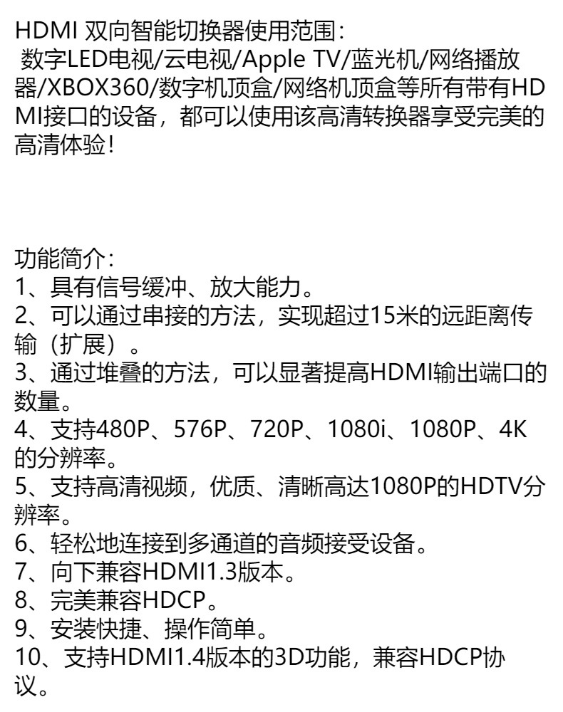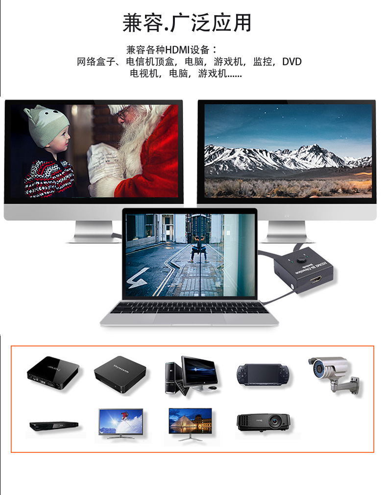 hdmi双向切换器二进一出4k二切一高清转换器2进1电视分配器显示器