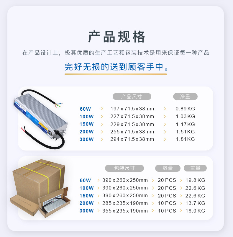 led防水开关恒压12V/24V 100W驱动 高pf 宽电压 IP68 全密封 电源