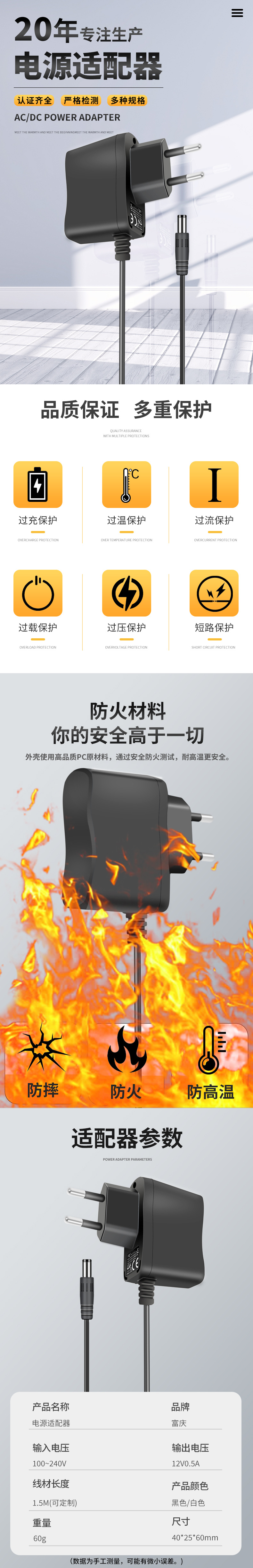 定制 12V0.5A电源适配器欧规CE/GS认证电源LED灯路由器电源适配器