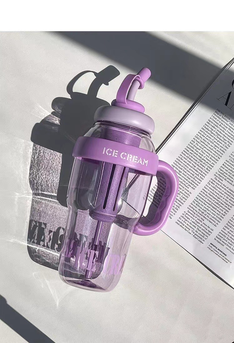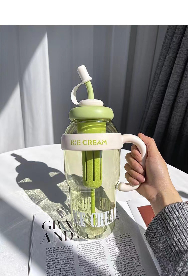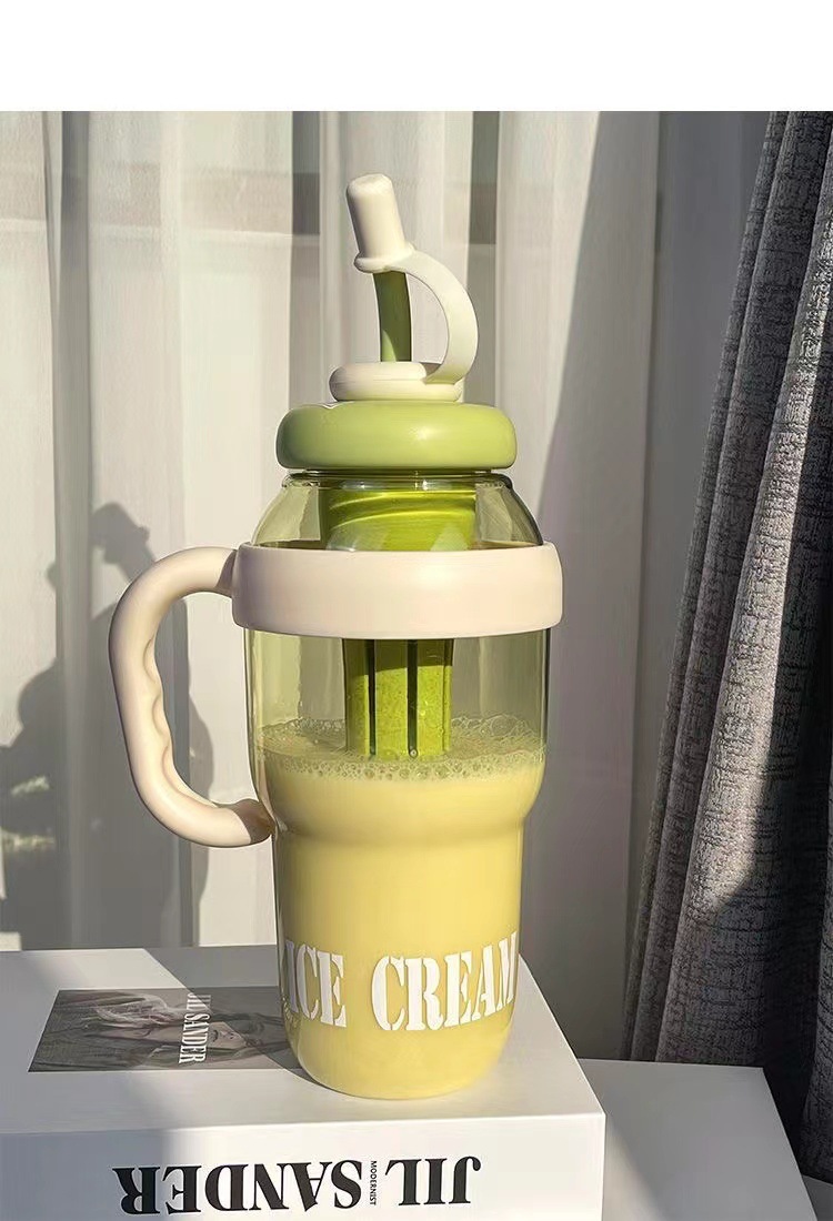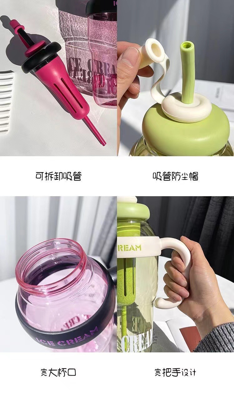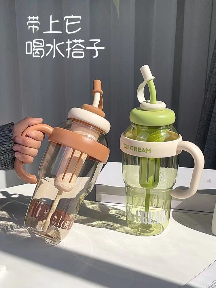 夏季高颜值塑料吸管杯带把手大容量水杯吸管杯花茶茶仓批发