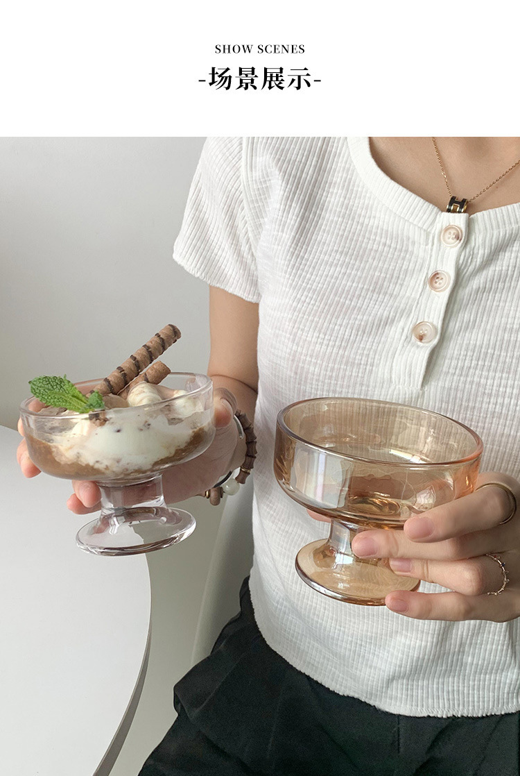 ins风甜品碗高颜值玻璃杯高脚杯家用冰淇淋雪糕布丁碗燕麦酸奶杯