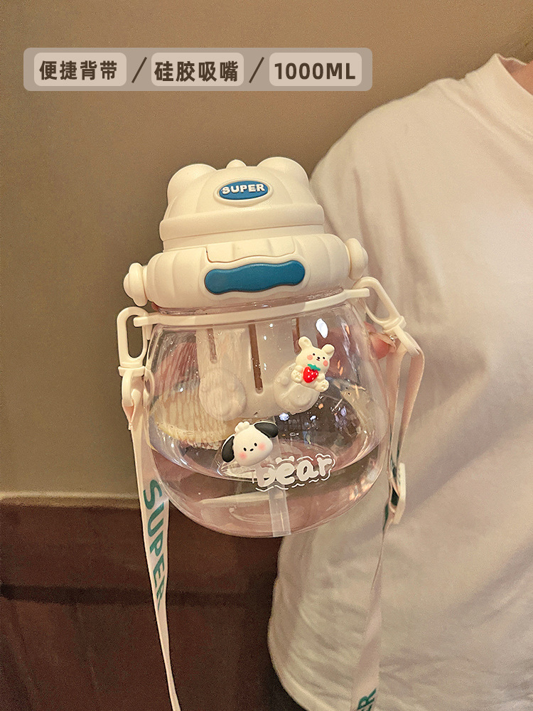 可爱水杯女生高颜值1000ml吸管大肚杯大容量茶水分离泡茶杯子夏天