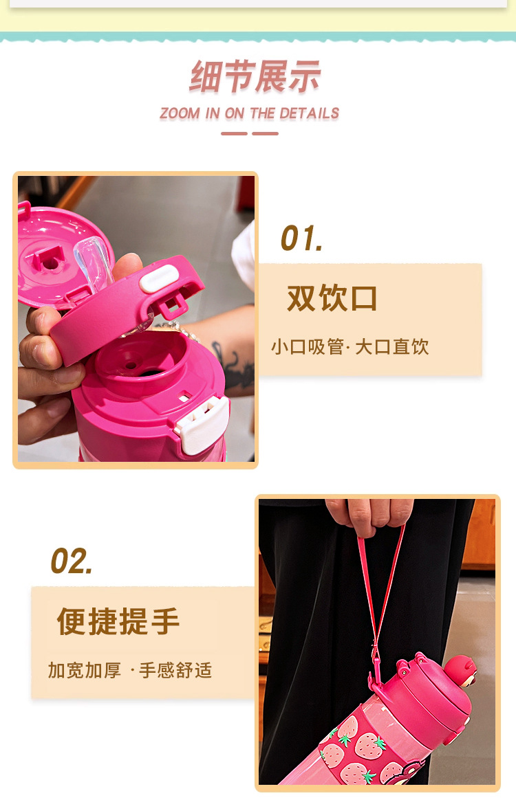 奥特曼儿童保温杯316不锈钢学生便捷保温壶高颜值带吸管双饮杯