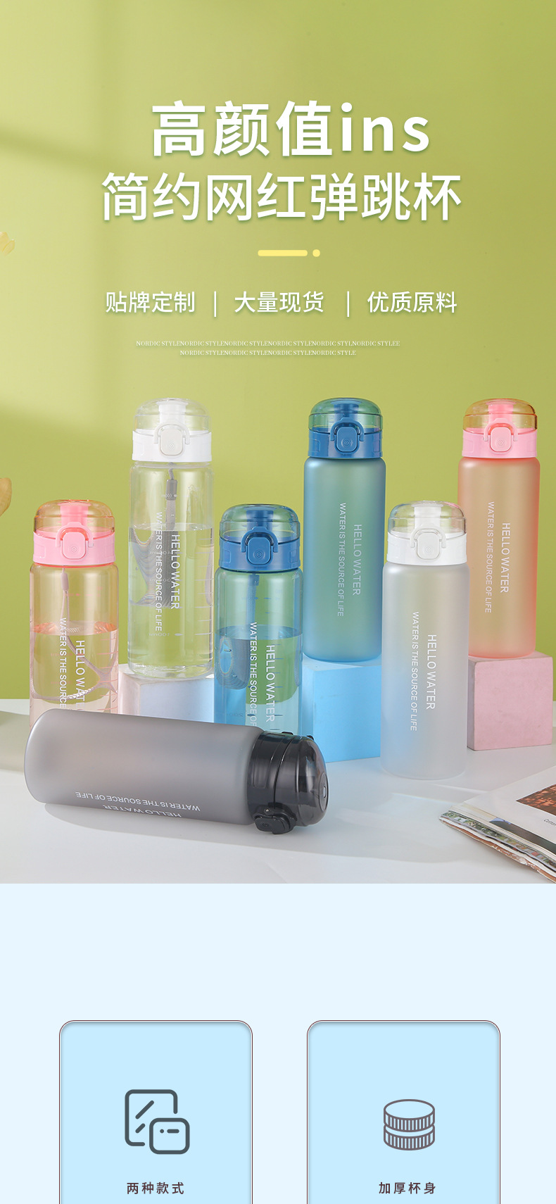 高颜值大容量塑料杯带提绳刻度杯子学生直饮杯户外运动水杯定 制
