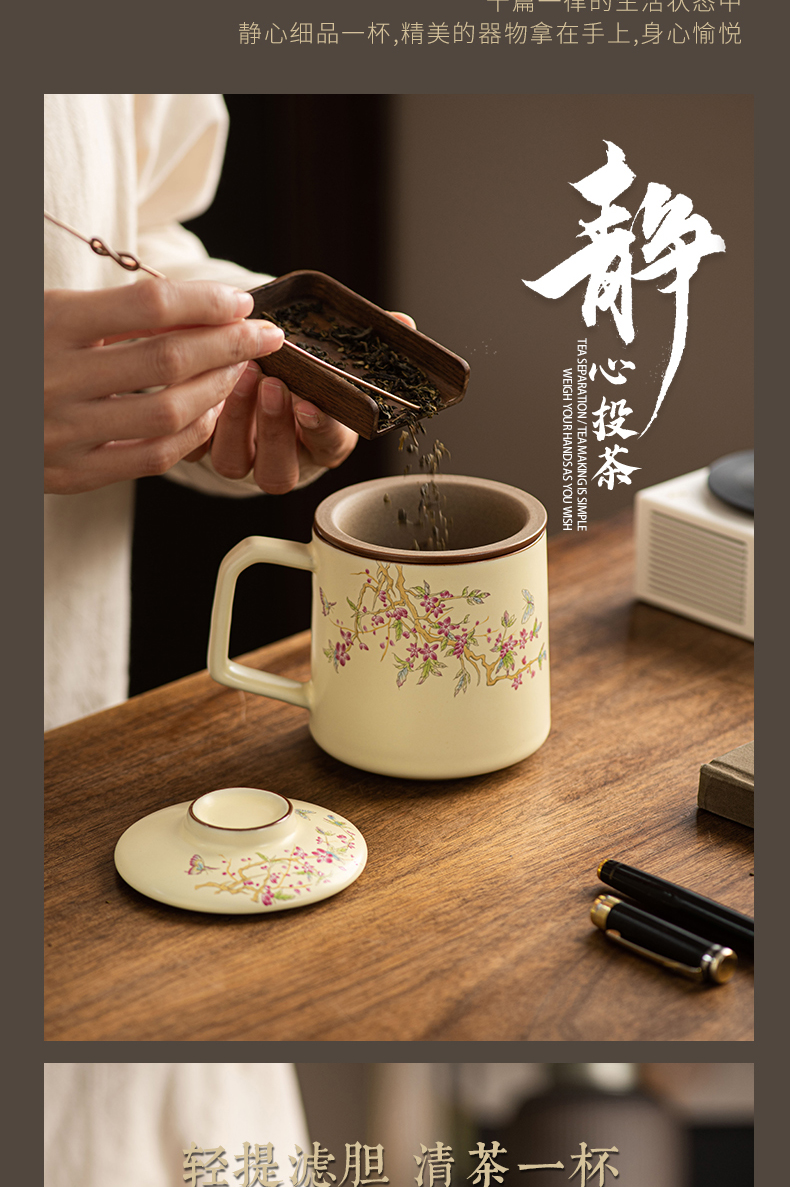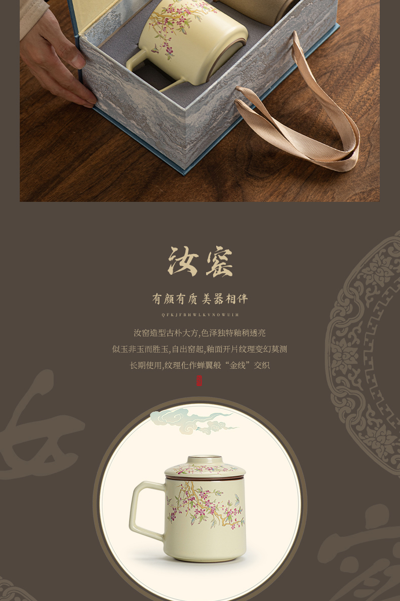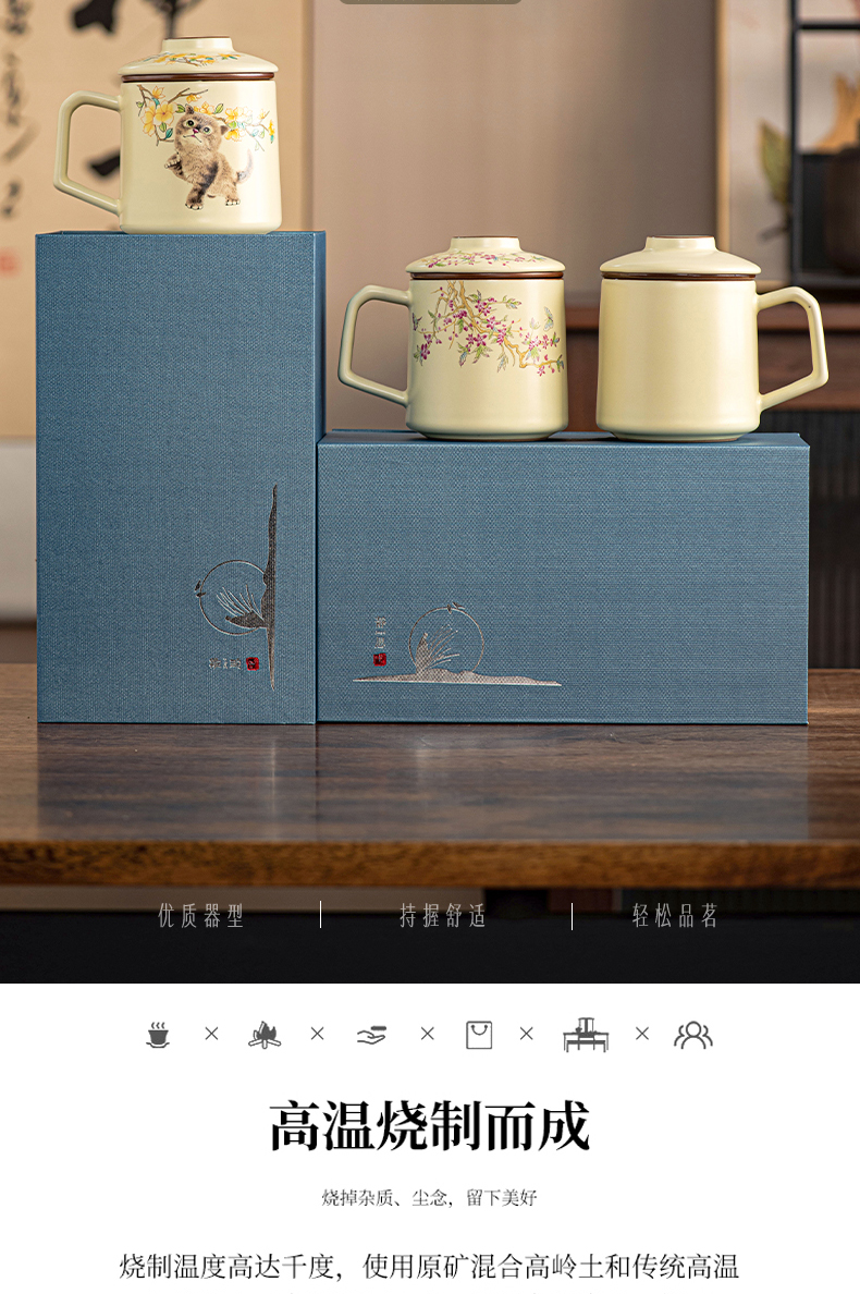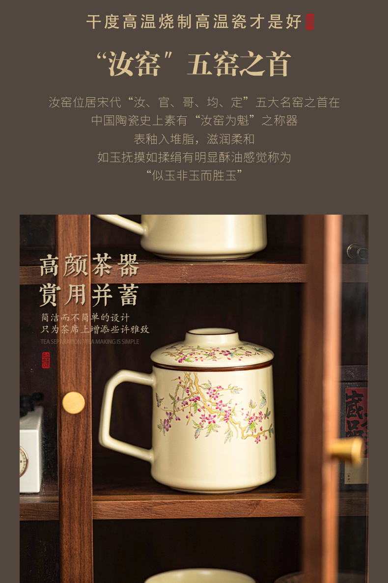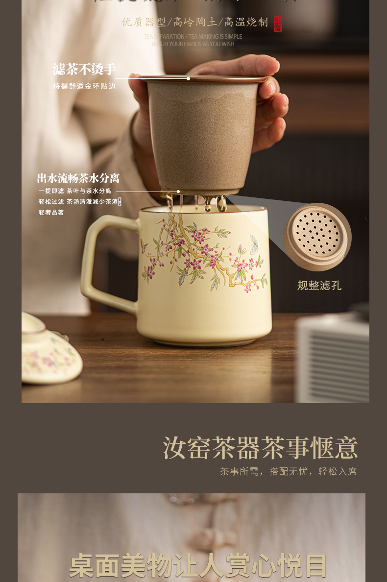 汝窑陶瓷马克杯带盖女士茶水分离大容量泡茶杯办公杯水杯印制logo