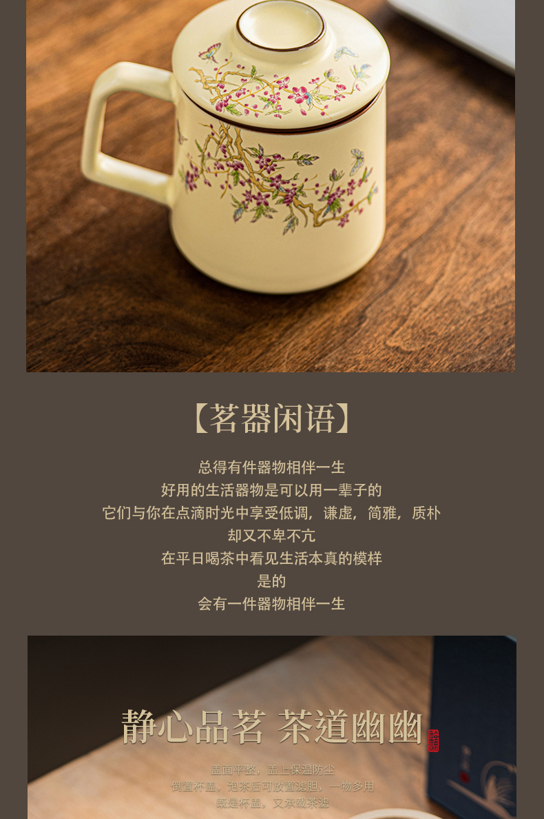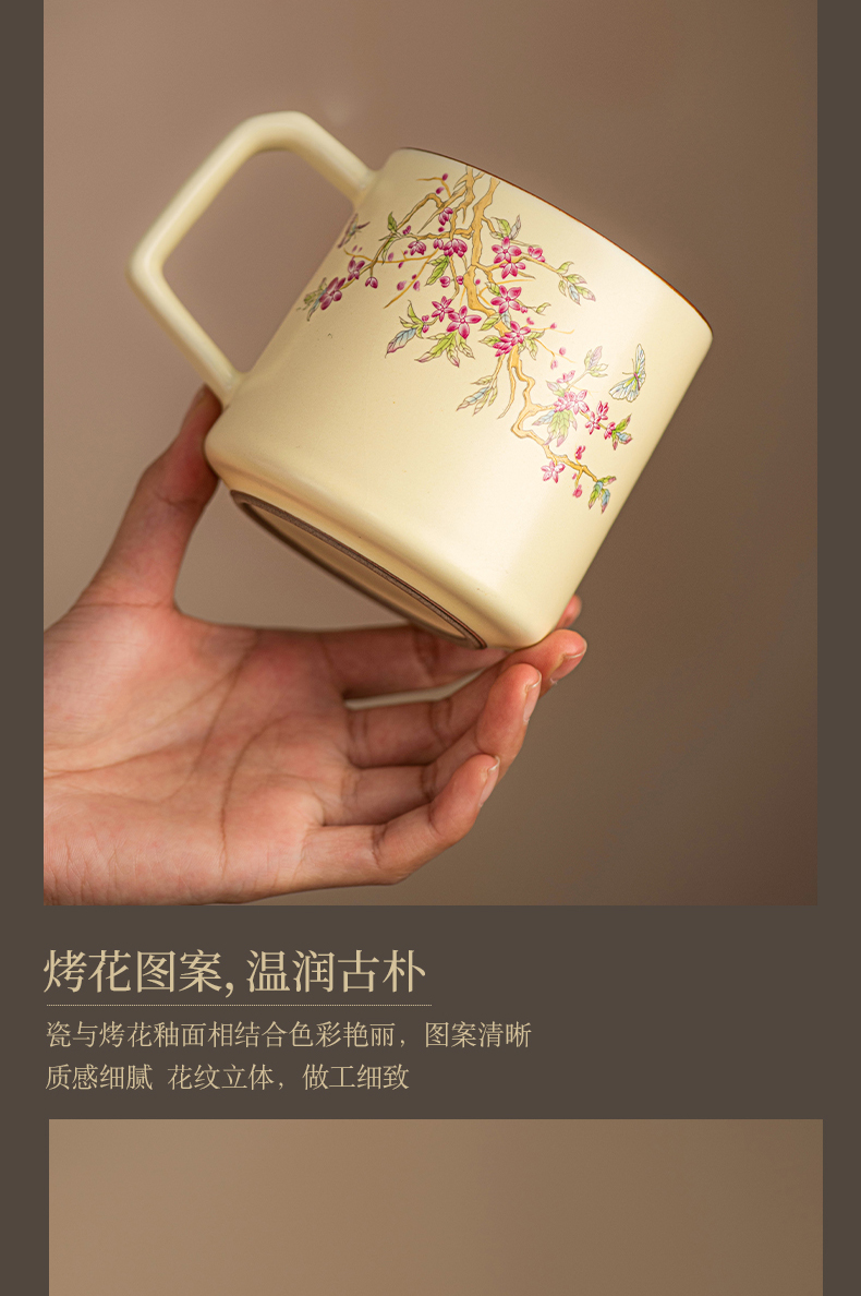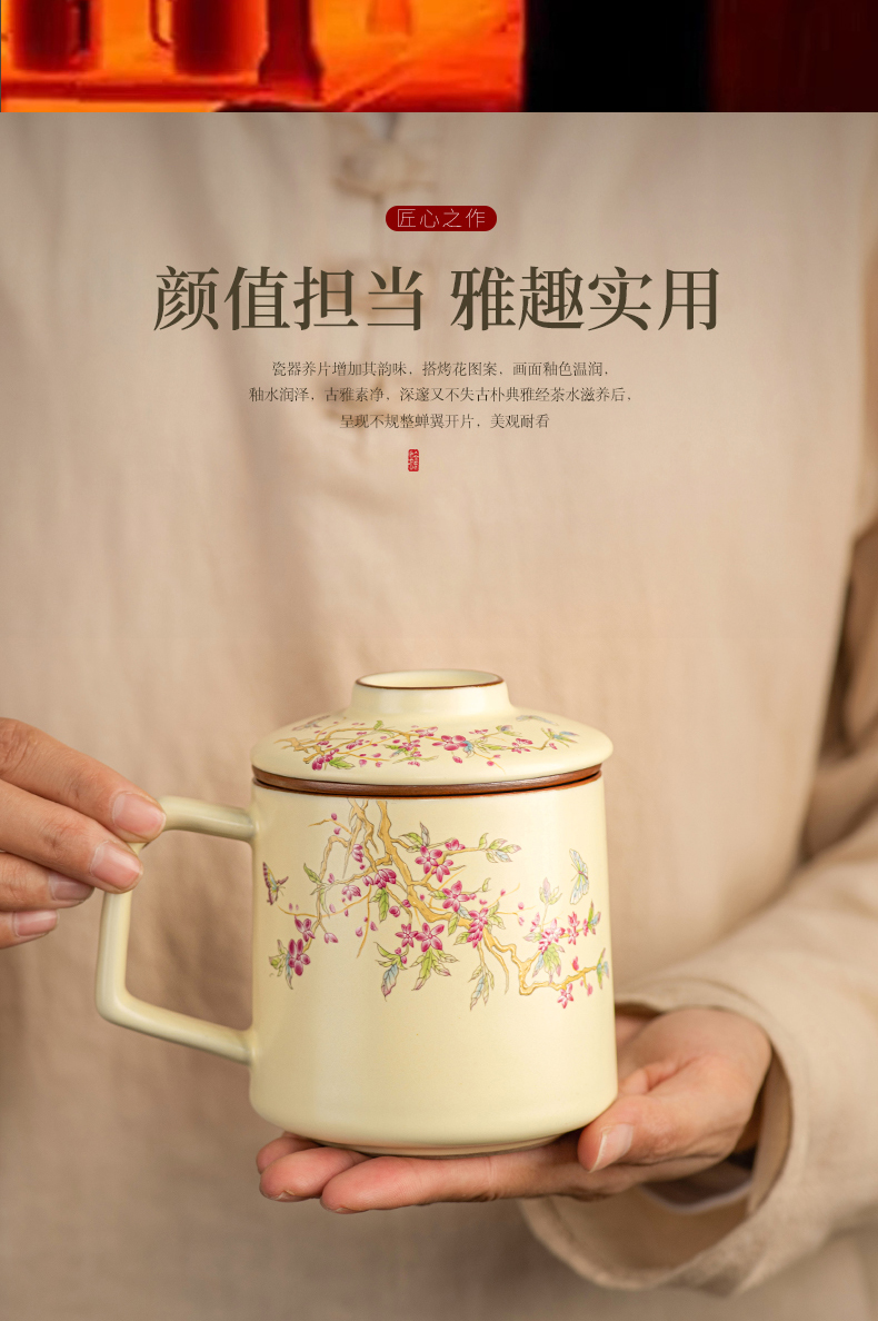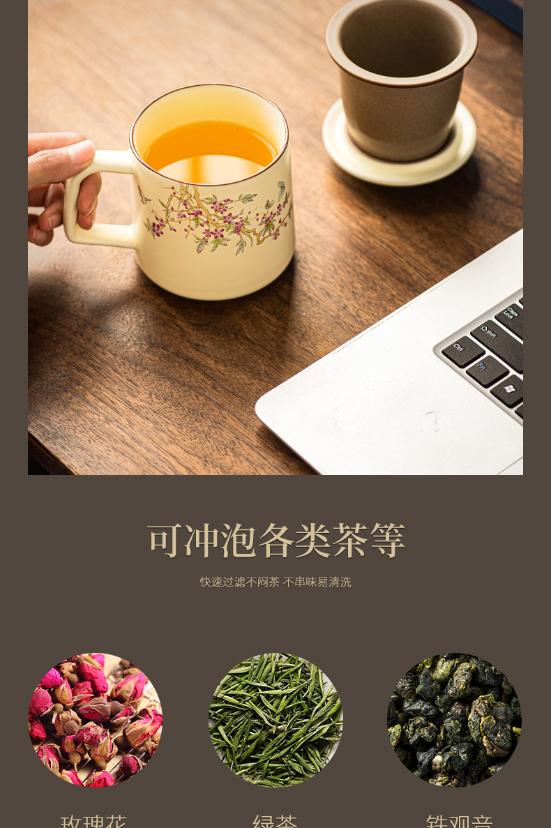 汝窑陶瓷马克杯带盖女士茶水分离大容量泡茶杯办公杯水杯印制logo