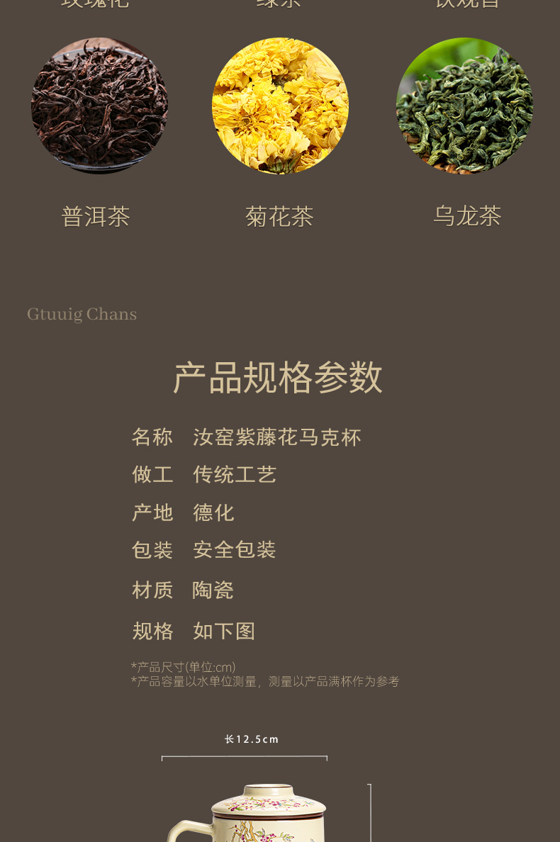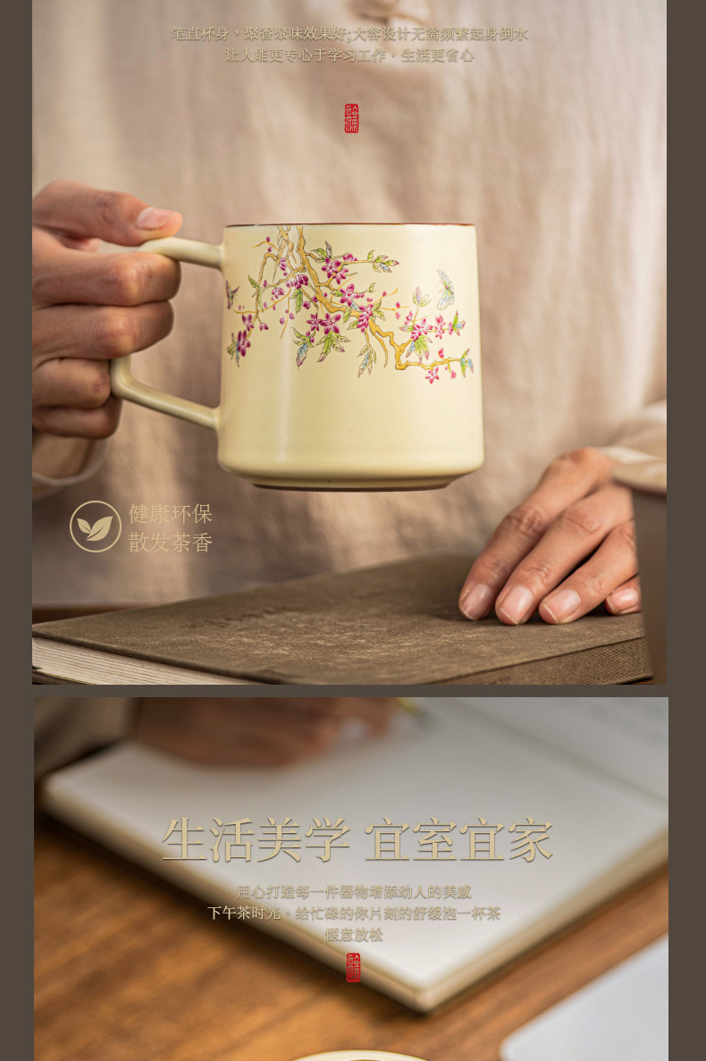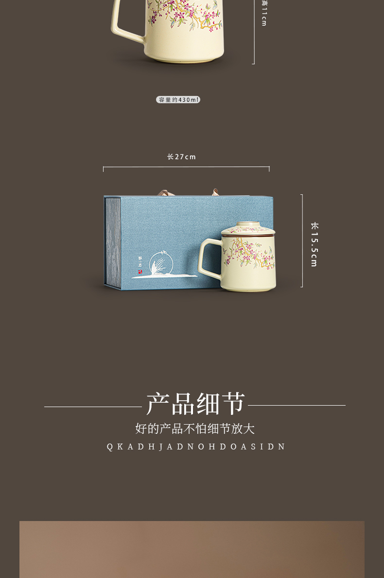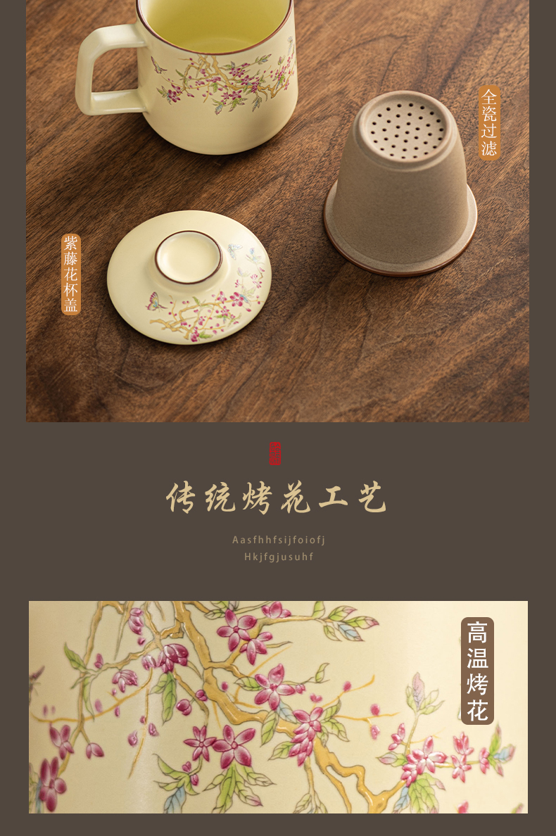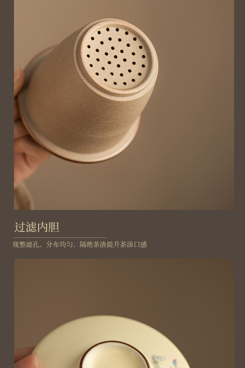汝窑陶瓷马克杯带盖女士茶水分离大容量泡茶杯办公杯水杯印制logo
