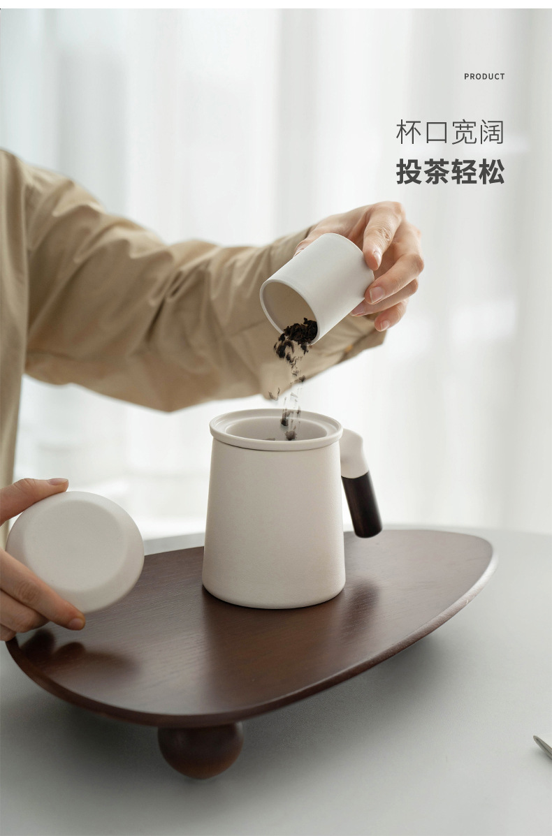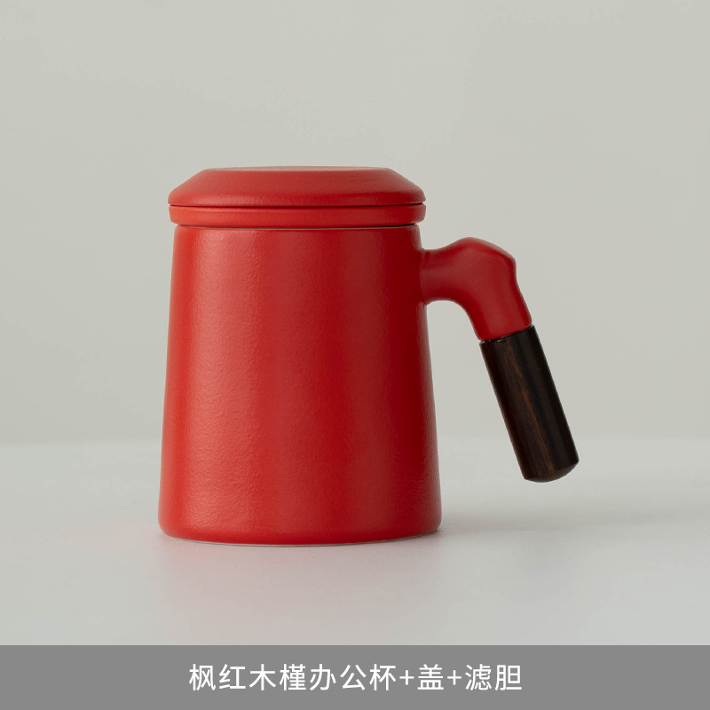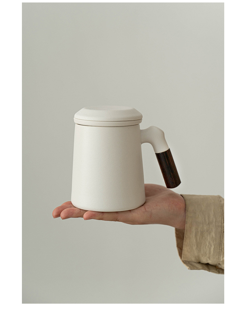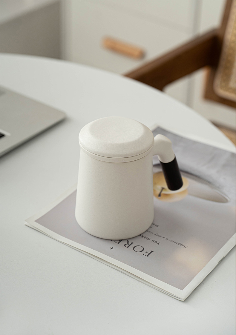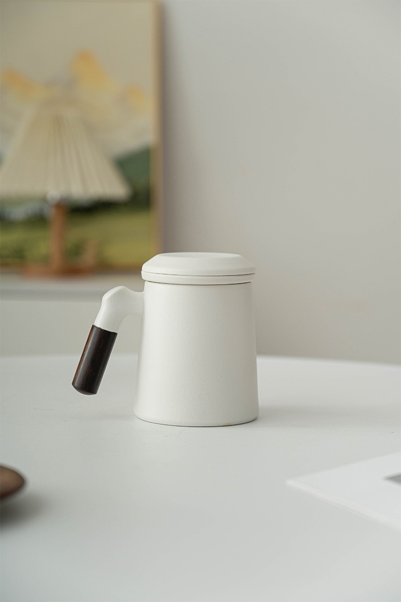 又见山雨陶瓷茶杯三件套带盖过滤茶水分离泡茶杯办公室个人水杯