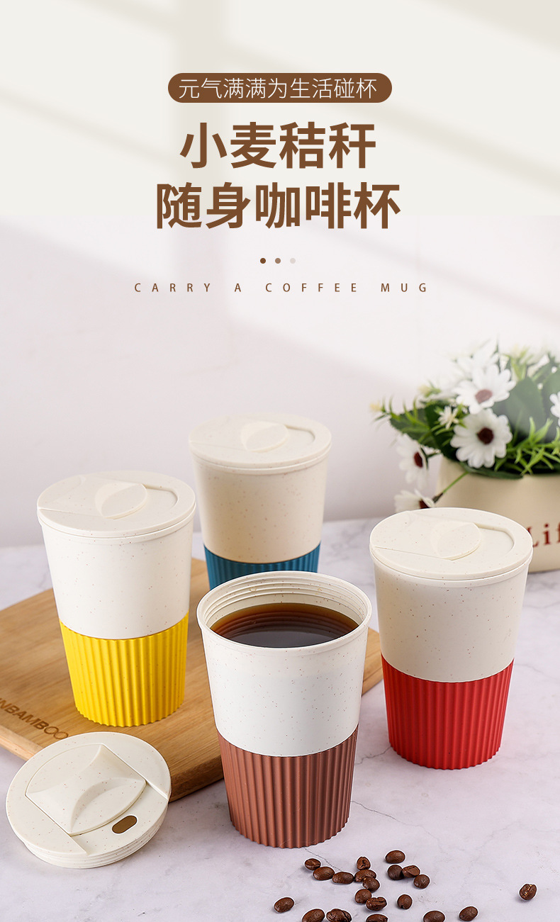 跨境小麦秸秆咖啡杯加厚防烫家用水杯新款奶茶杯户外便携随手杯子