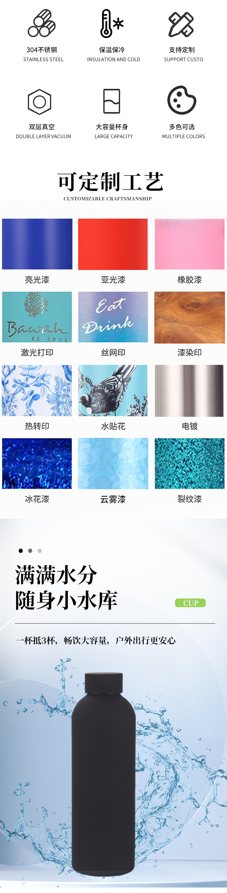 跨境美式小口瓶304不锈钢户外运动水壶便携保温杯亚马逊汽车杯子