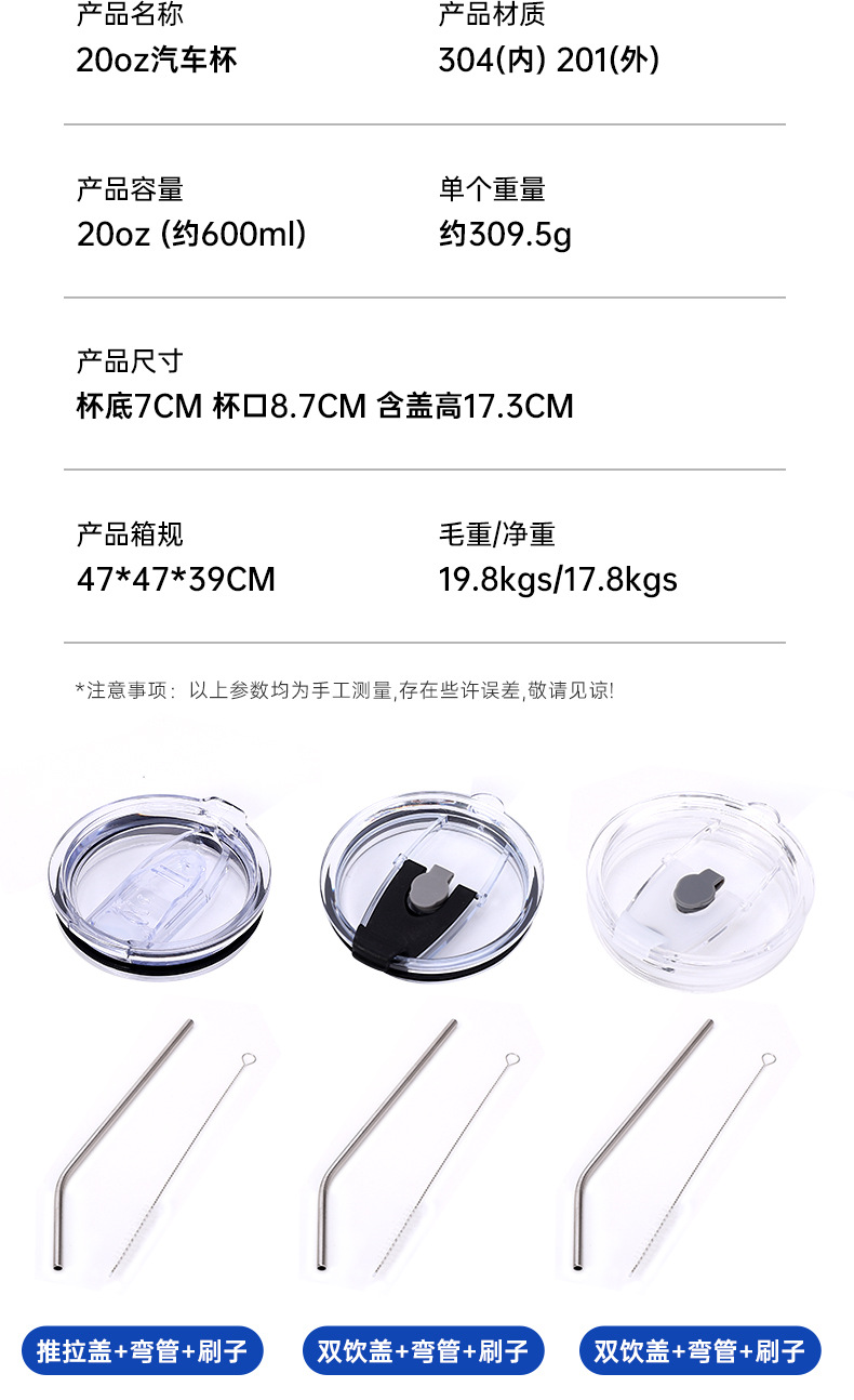 汽车杯跨境专供创意20oz真空不锈钢保温杯户外便携随行冰霸杯简约