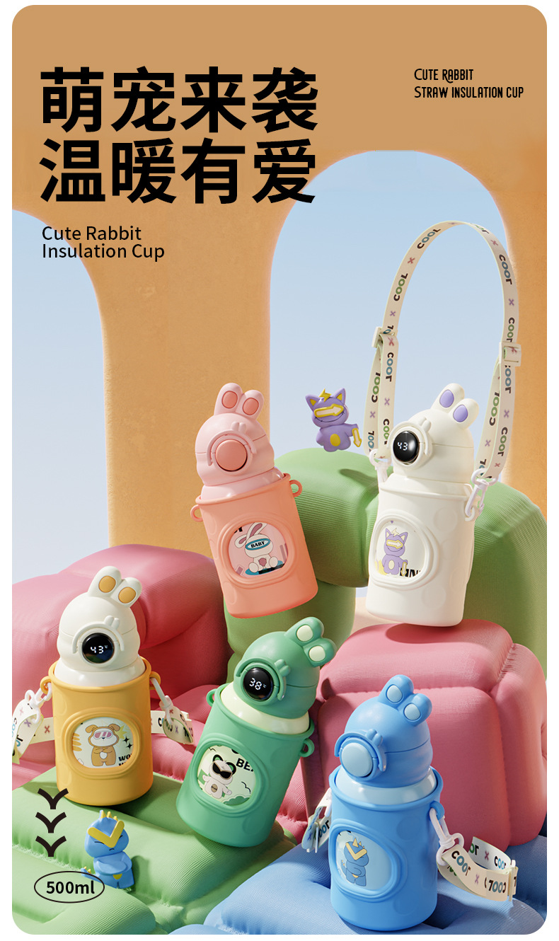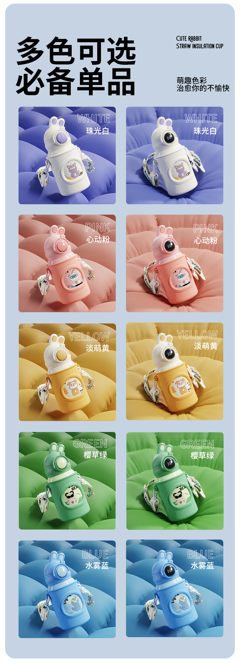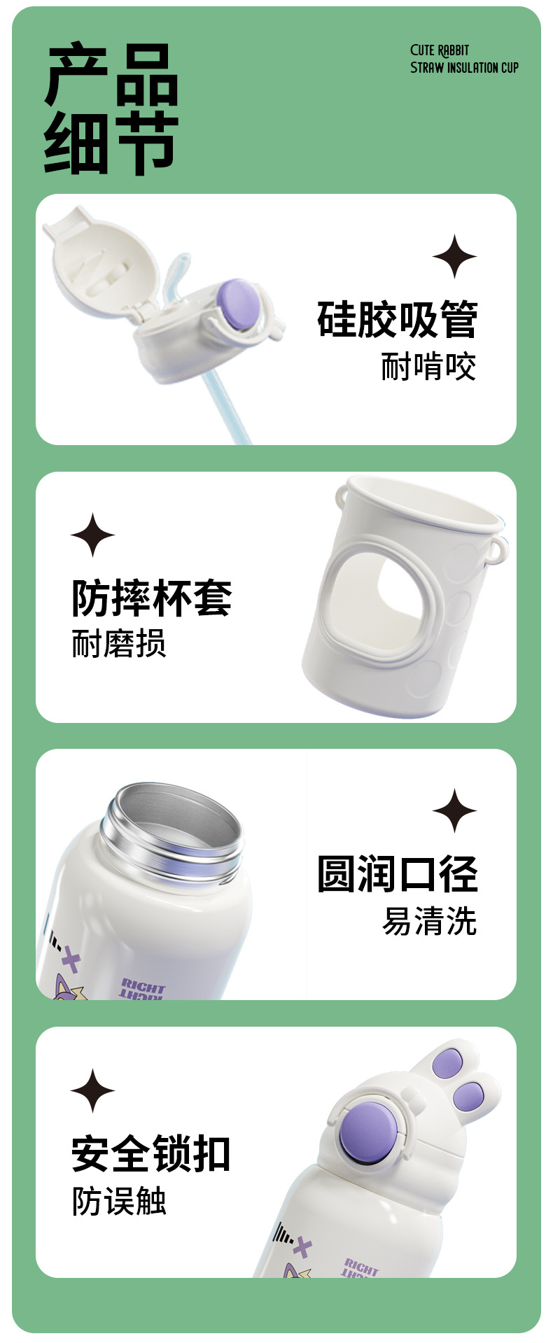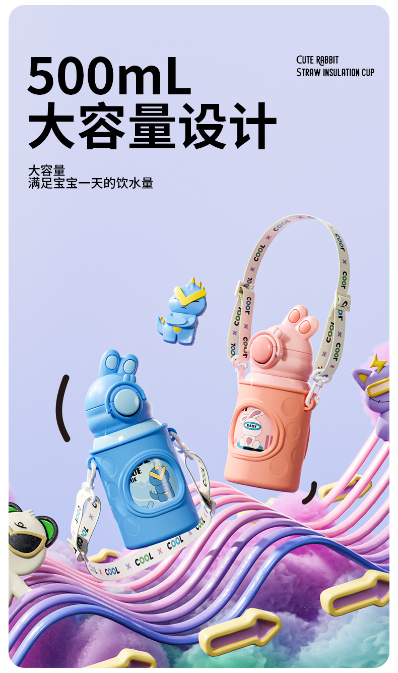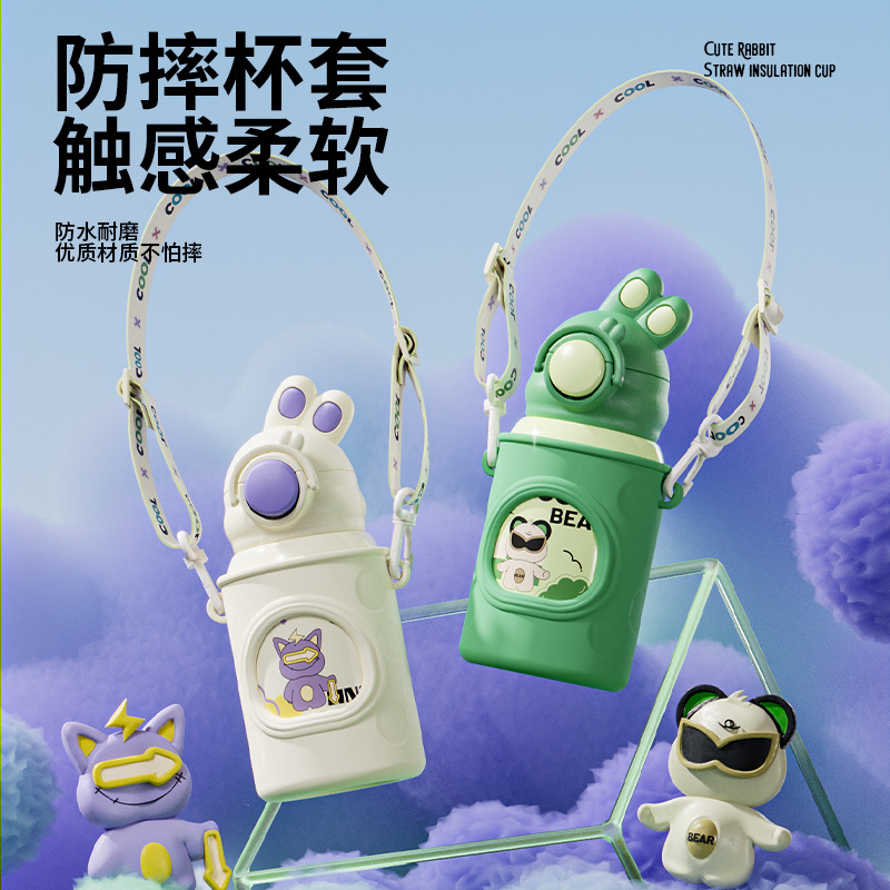 儿童保温杯316不锈钢吸管杯可爱不锈钢卡通学生杯便携杯带厂家