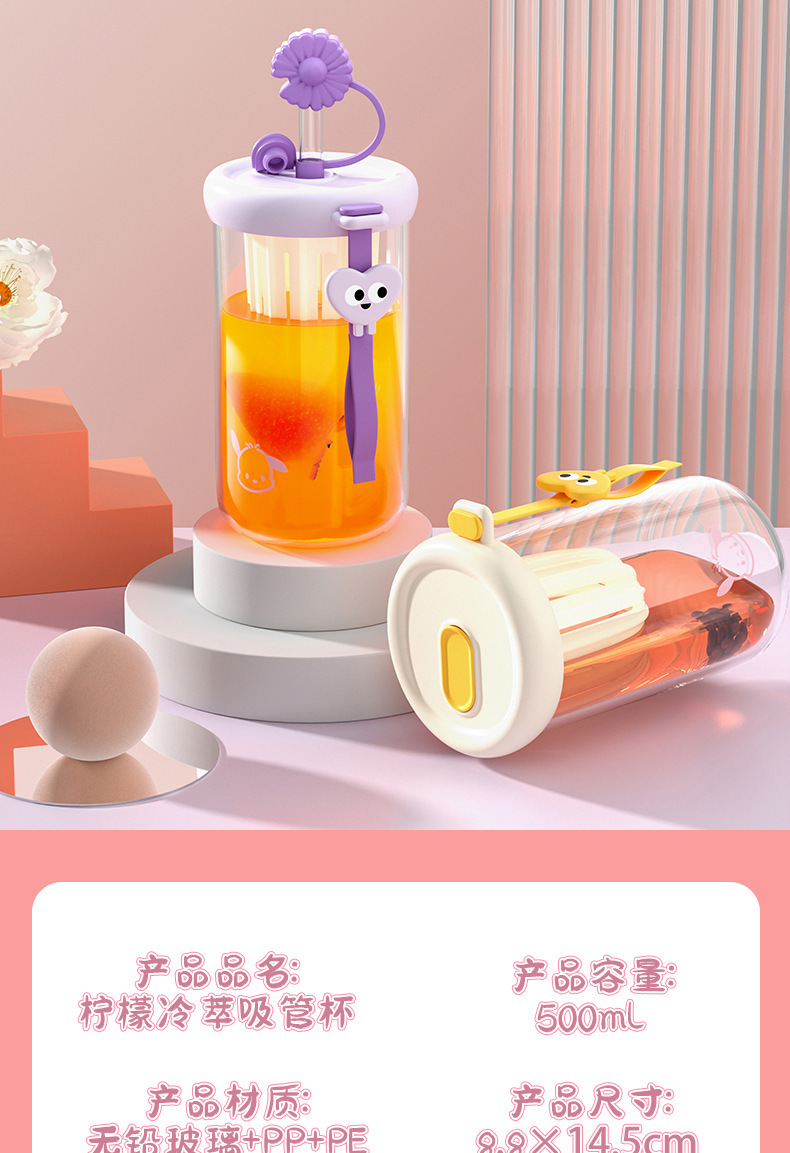 水杯夏凉杯带吸管女ins冷萃杯玻璃创意高颜值夏季