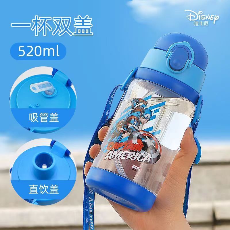 运动儿童水杯夏季男孩长方形专用学生背带吸管杯子耐高温双盖水壶