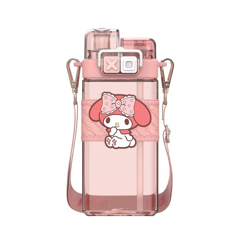 朋克双饮吸管杯男女生高颜值塑料户外运动杯创意便携斜跨水杯子