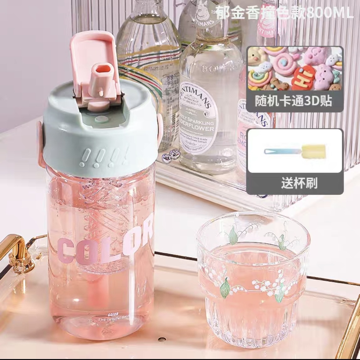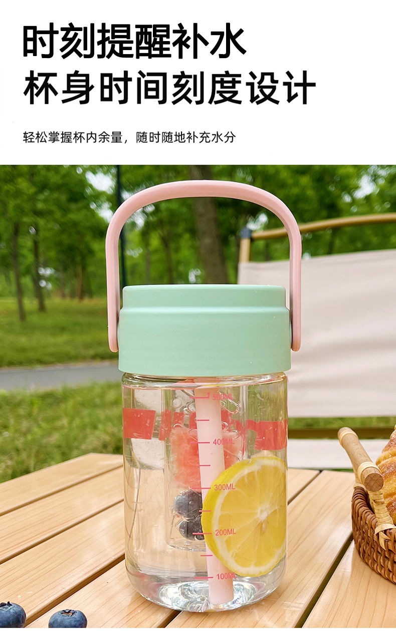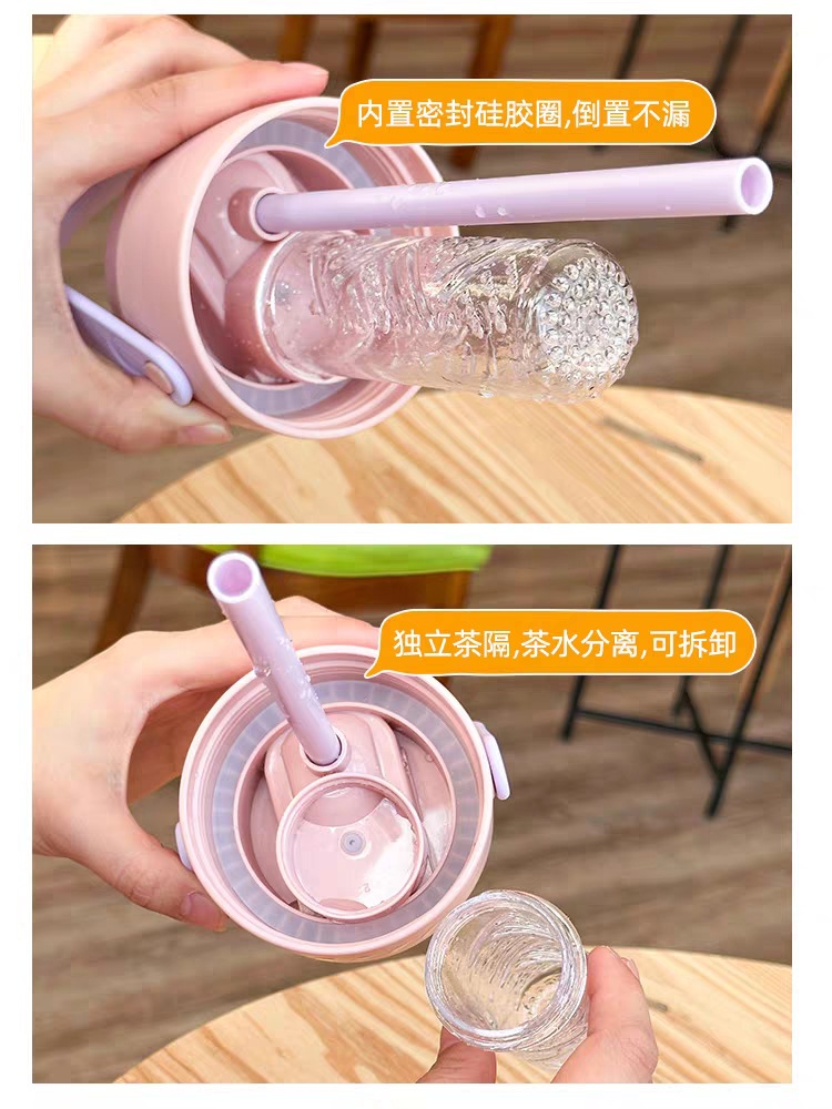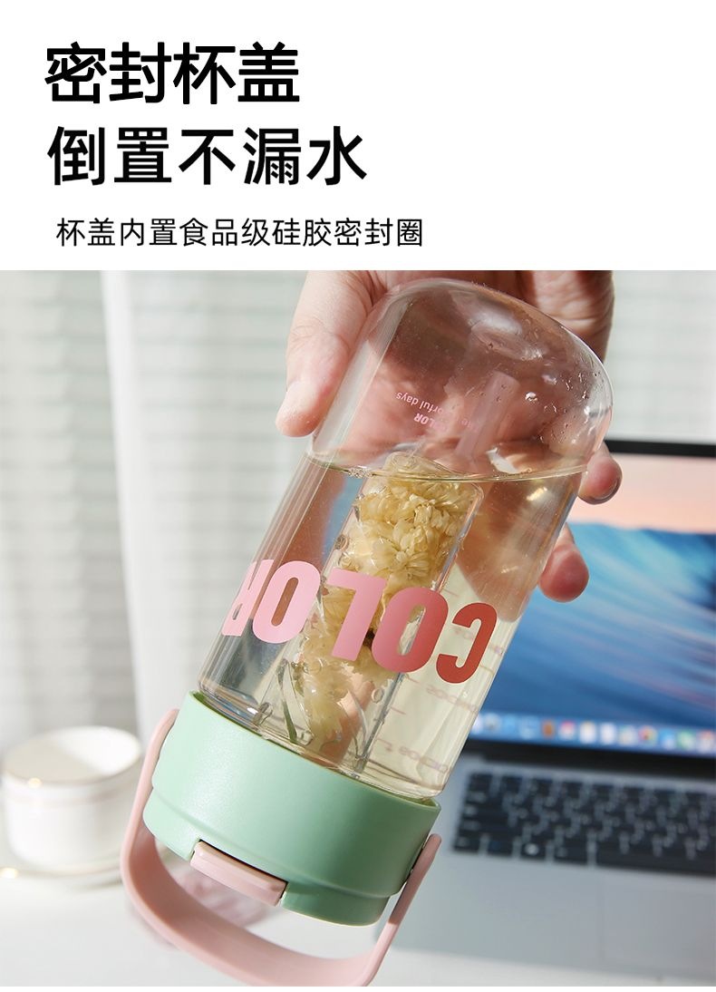 夏季高颜值塑料杯女生ins大容量吸管杯花茶果茶便携茶漏运动水杯