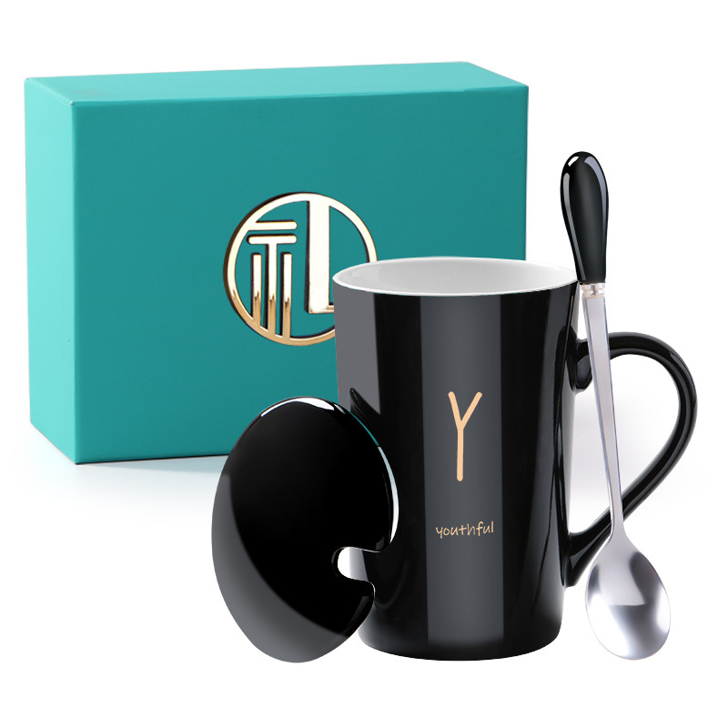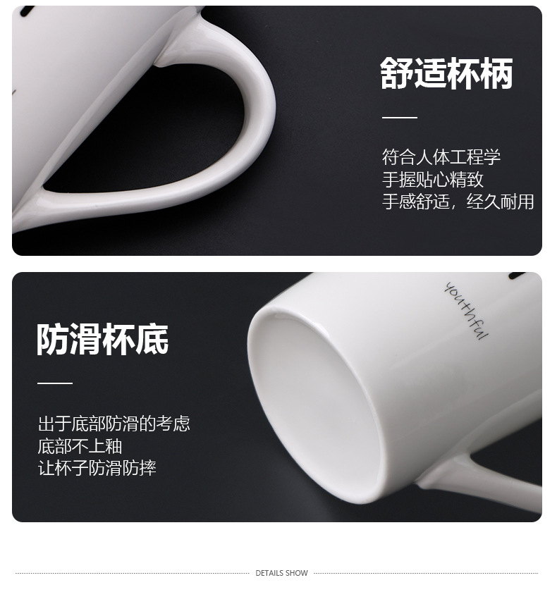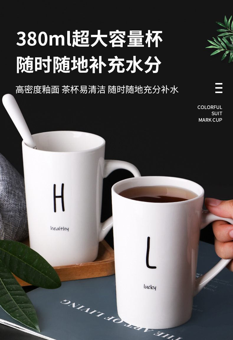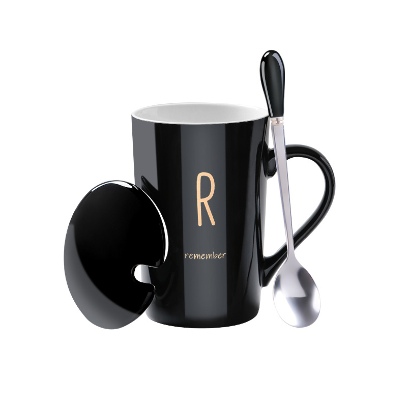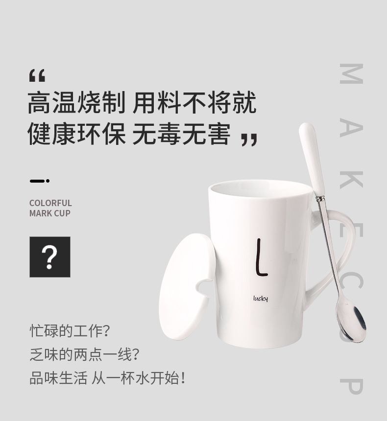 陶瓷马克杯带盖勺咖啡杯家用情侣喝水杯杯子男生女生办公室的茶杯