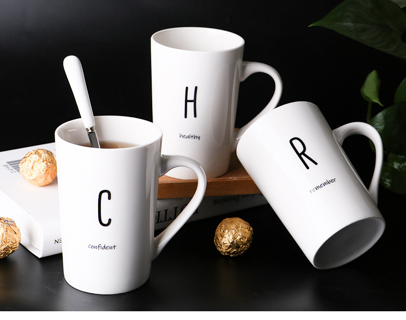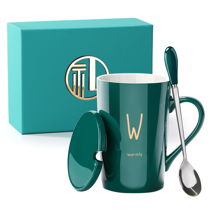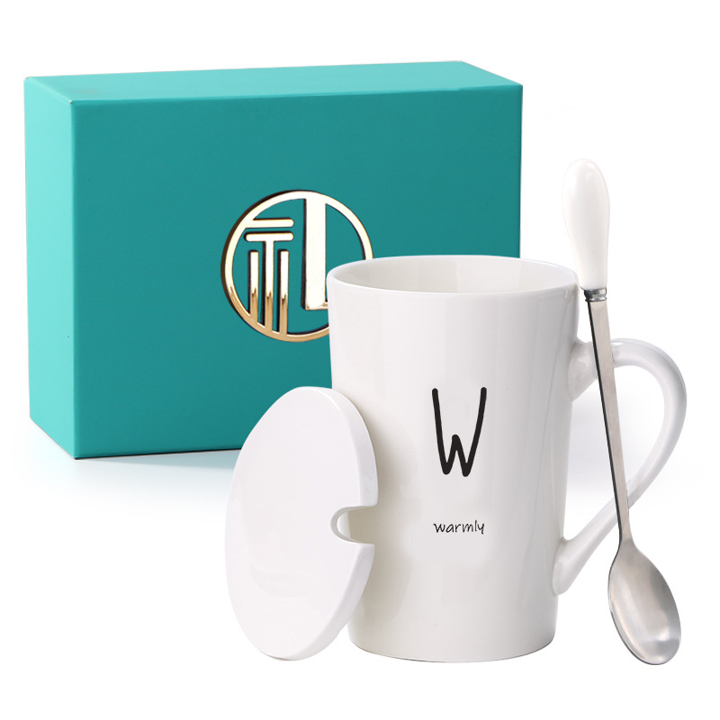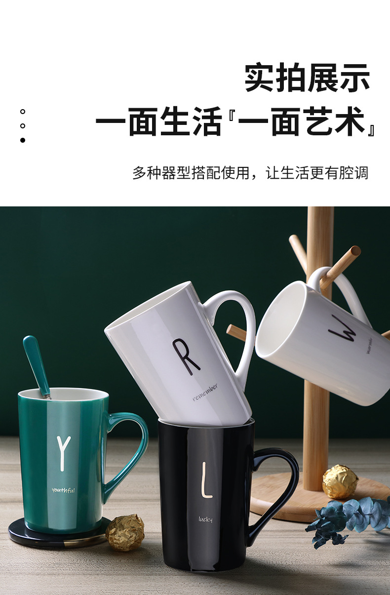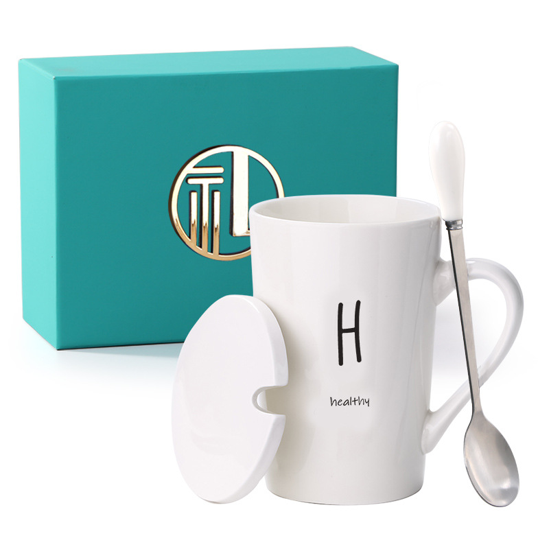 陶瓷马克杯带盖勺咖啡杯家用情侣喝水杯杯子男生女生办公室的茶杯