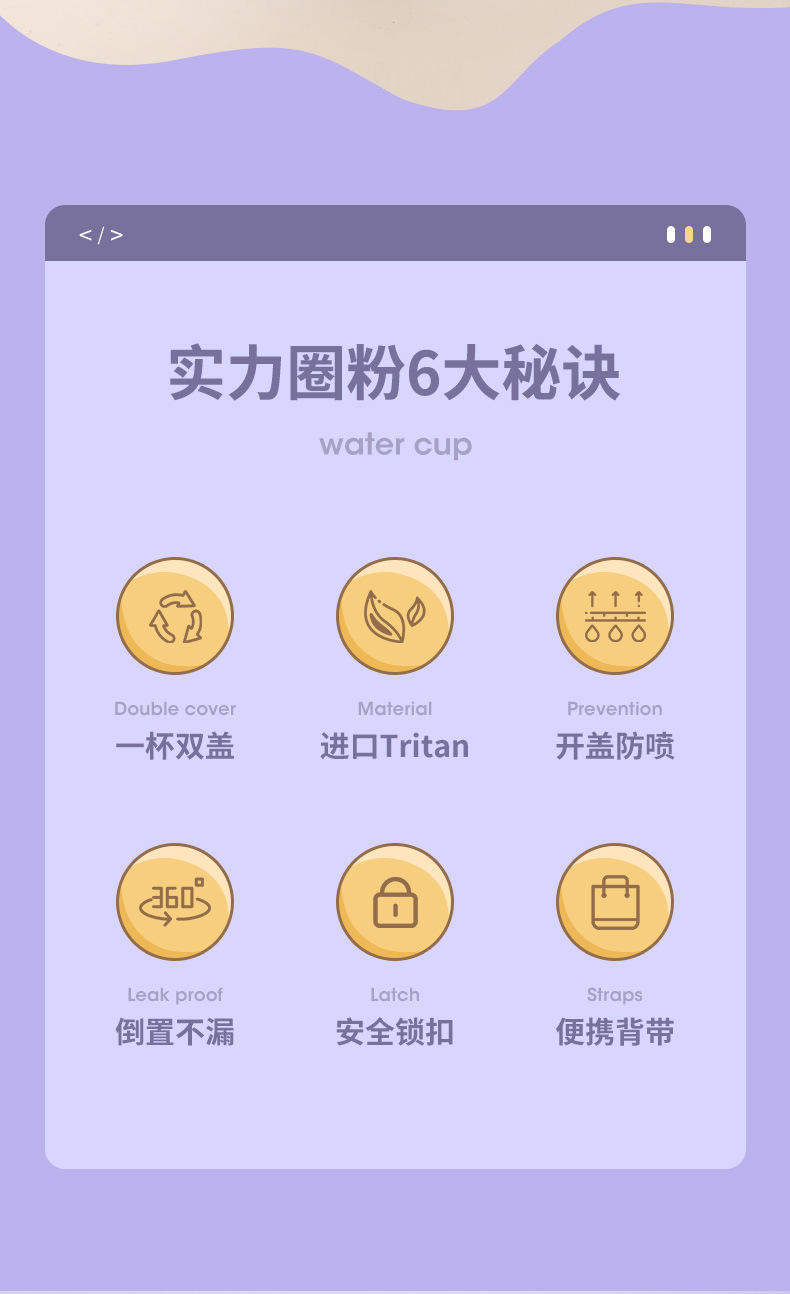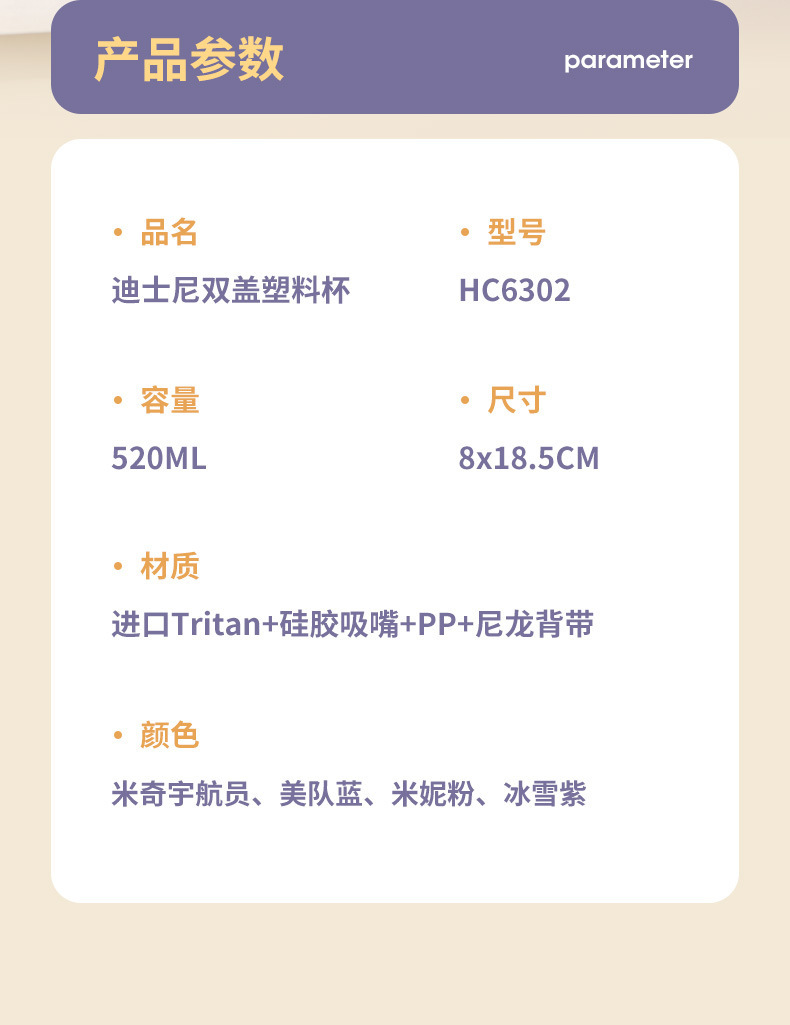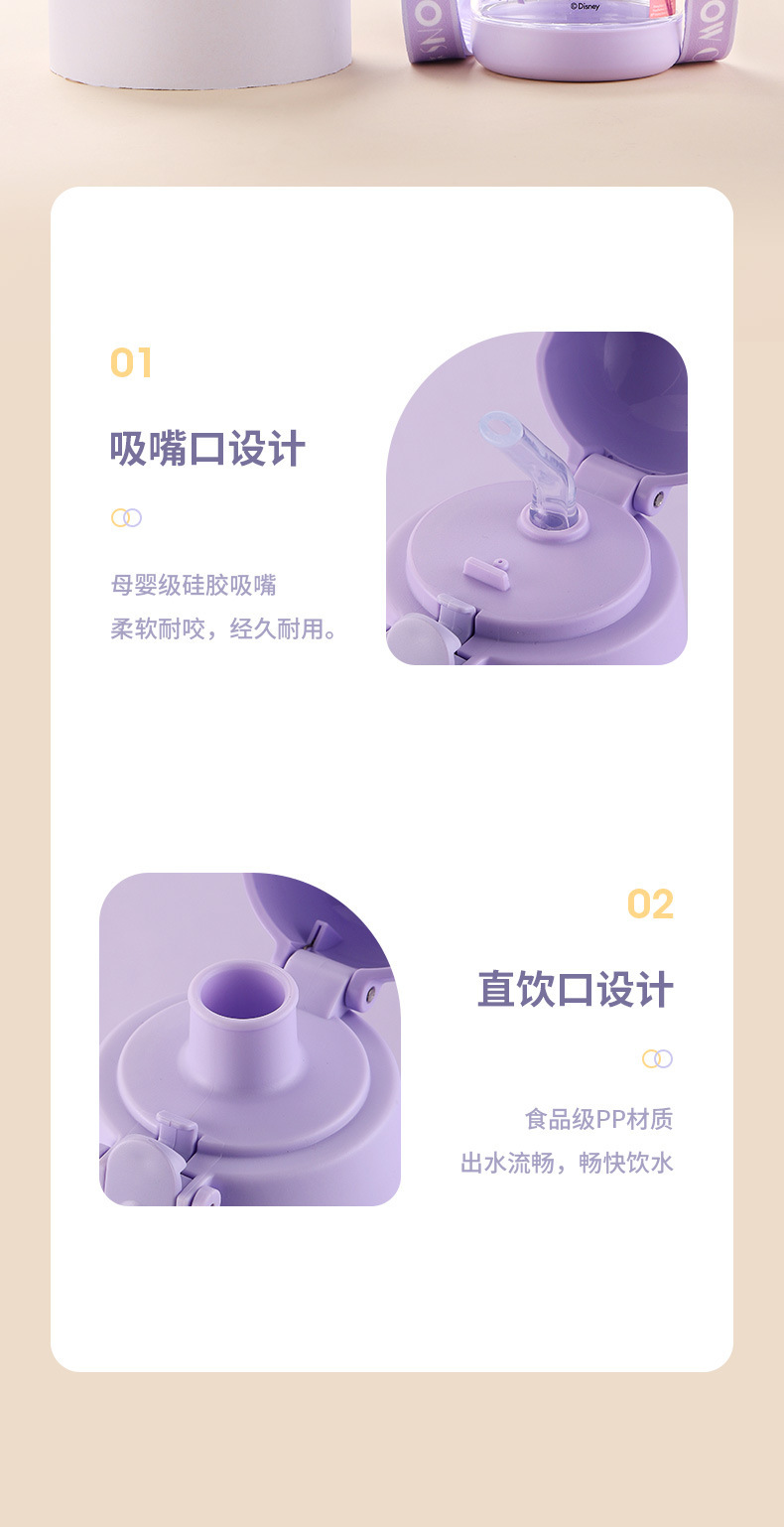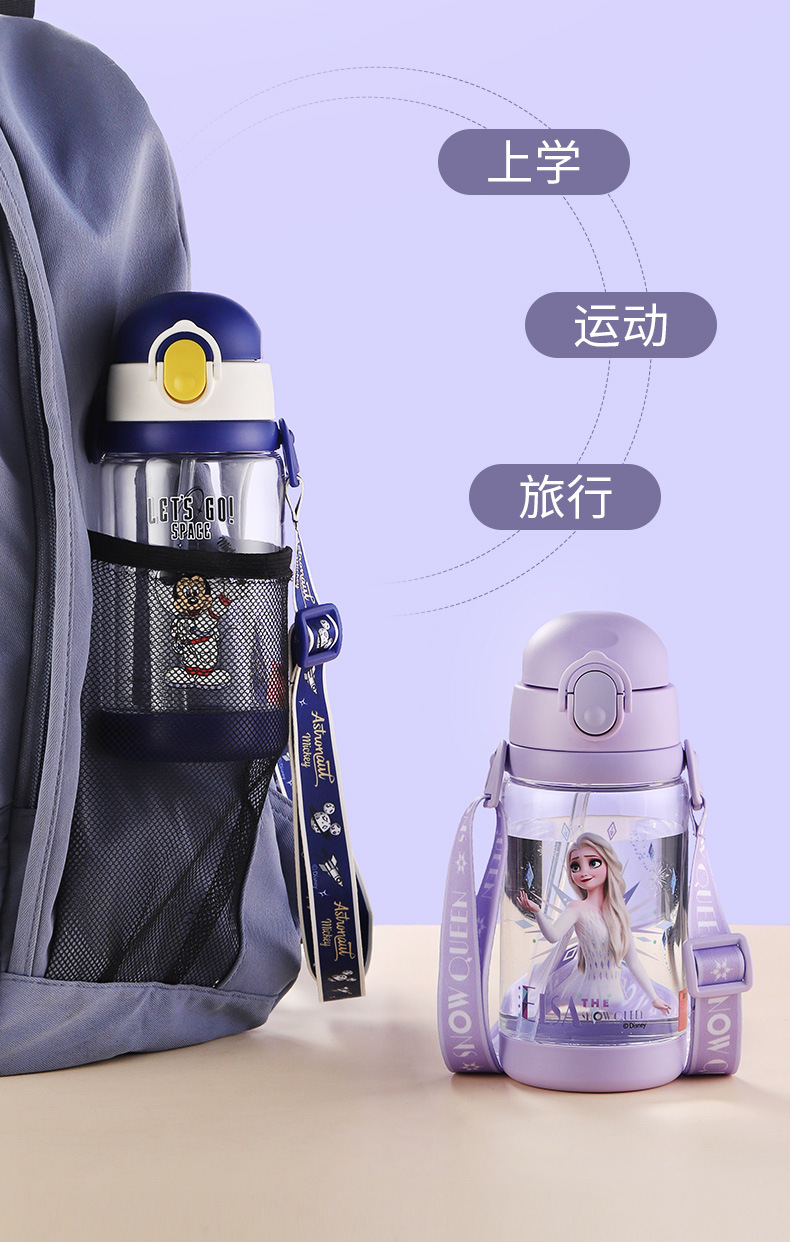 迪士尼儿童水杯塑料杯学生便携食品级tritan材质上学专用儿童水杯