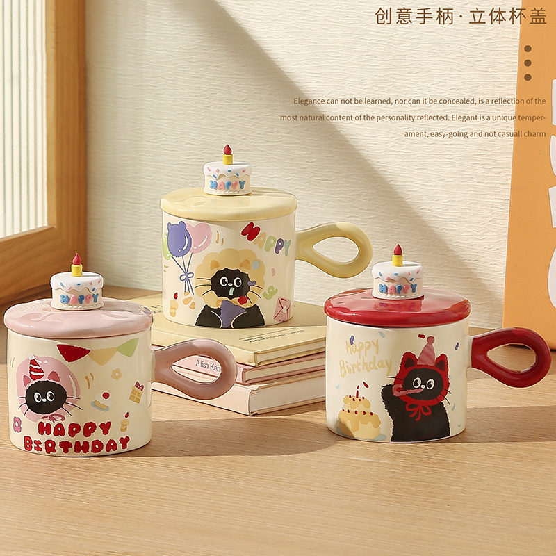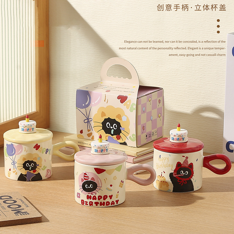 可爱卡通猫咪陶瓷马克杯情侣水杯高颜值礼盒伴手礼生日礼物早餐杯