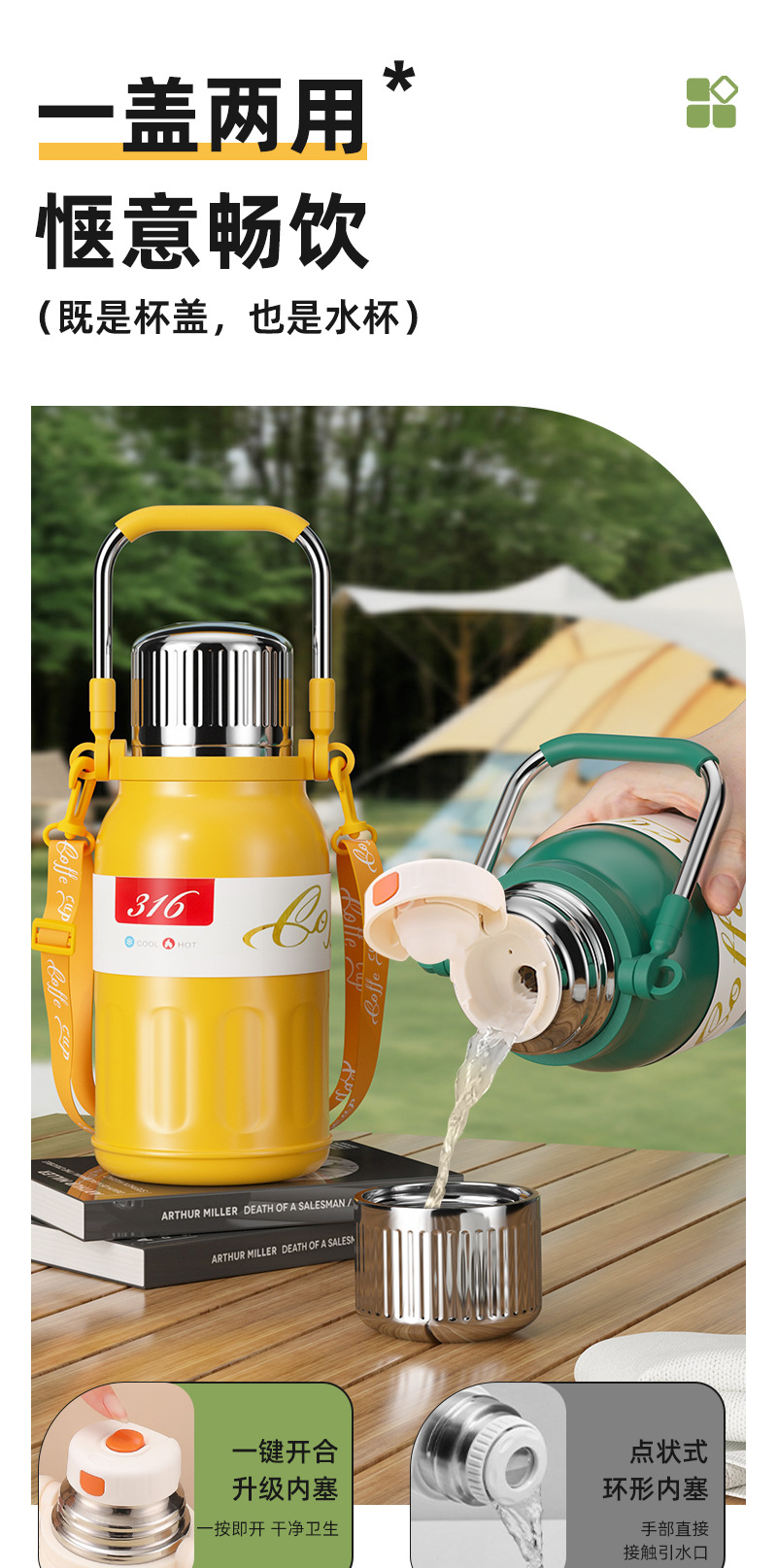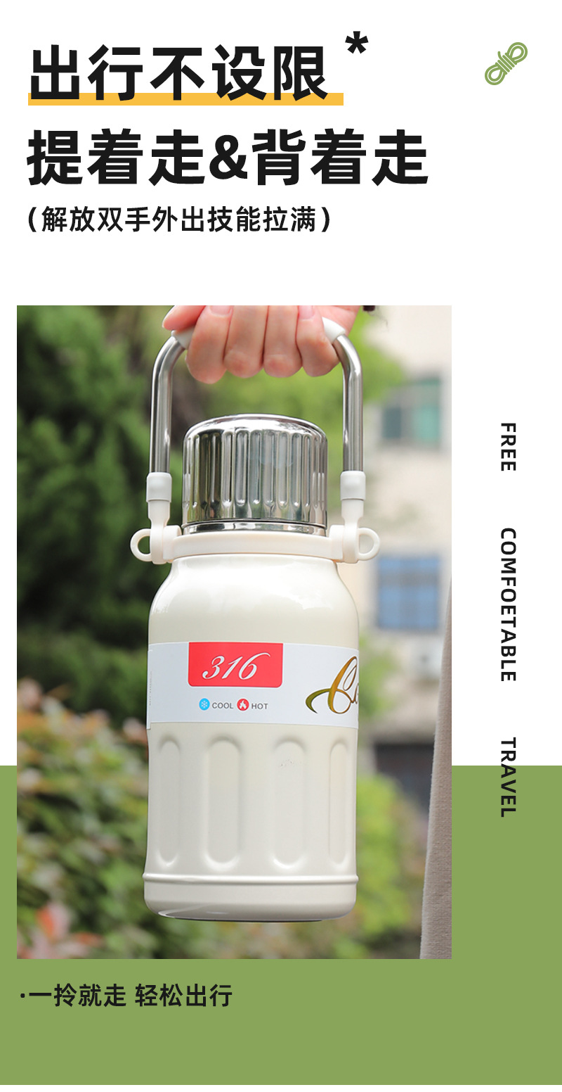 户外运动保温杯大容量便携大肚保温水壶316不锈钢车载手提热水壶
