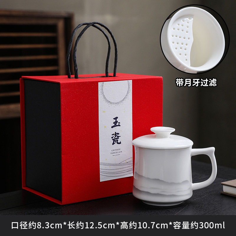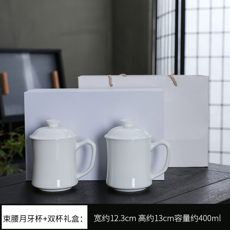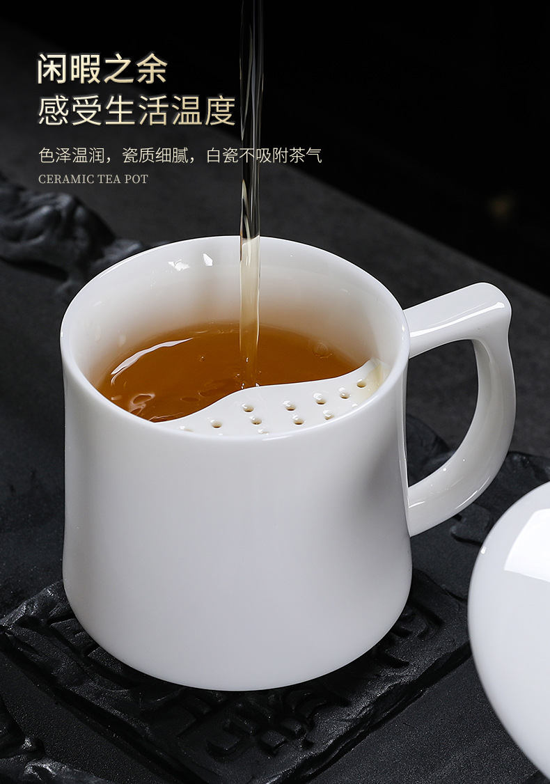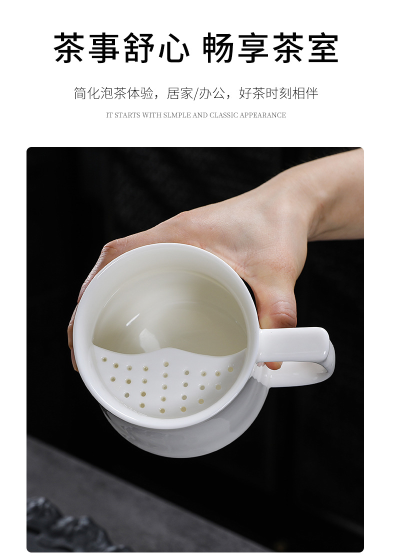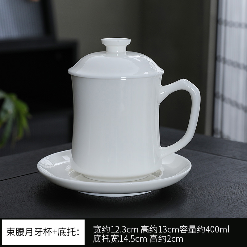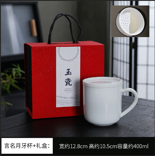羊脂玉月牙杯陶瓷办公杯过滤茶杯绿茶杯家用水杯大容量白瓷泡茶杯