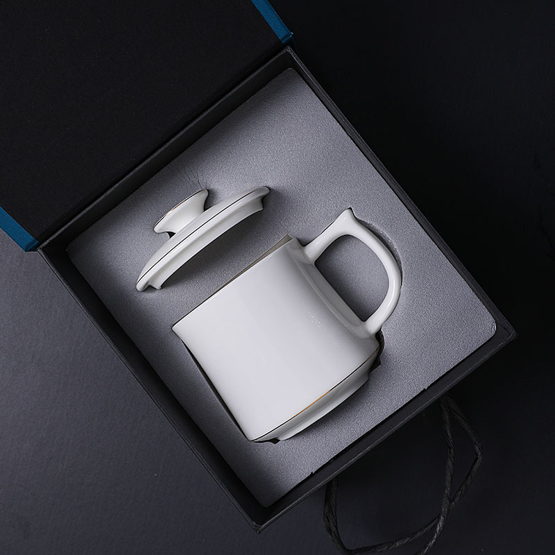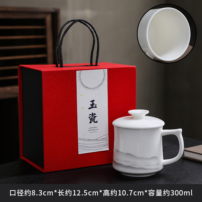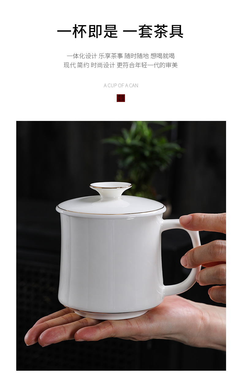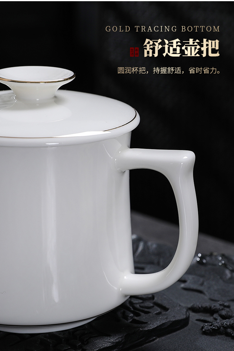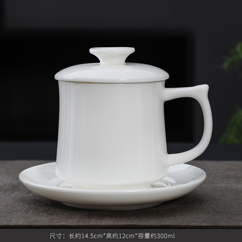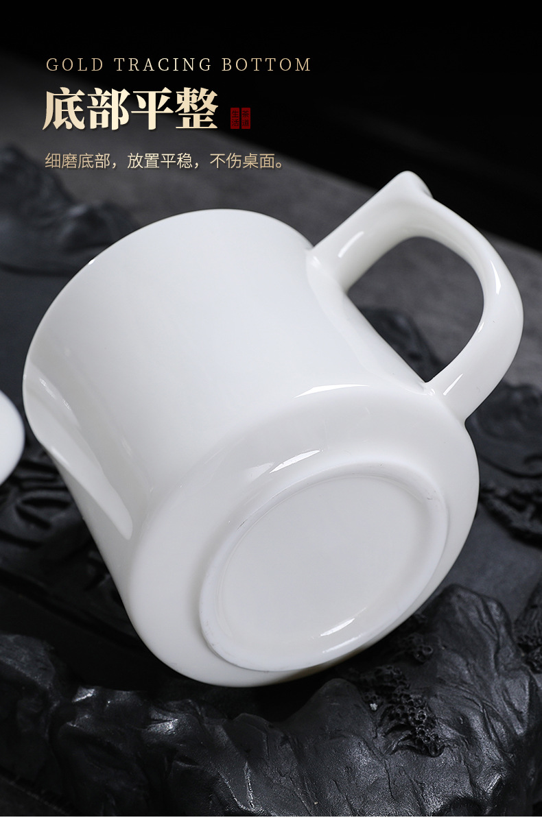羊脂玉月牙杯陶瓷办公杯过滤茶杯绿茶杯家用水杯大容量白瓷泡茶杯