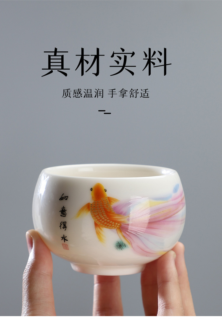 批发商用羊脂玉陶瓷主人杯茶杯个人喝茶单杯茶盏大号中国风品茗杯