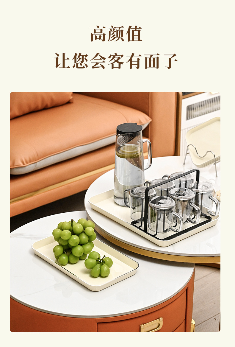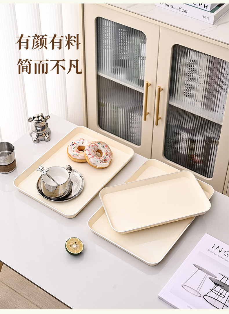 茶盘托盘长方形塑料家用客厅放茶杯水杯盘子水果点心收纳盘轻奢风
