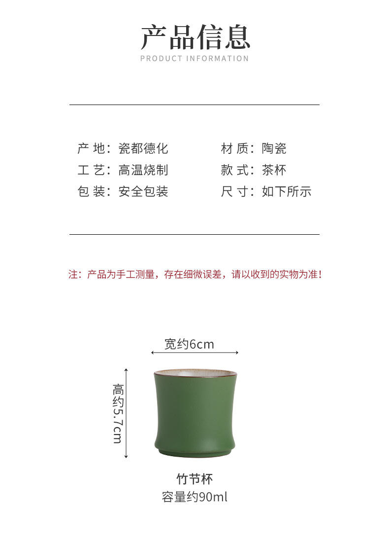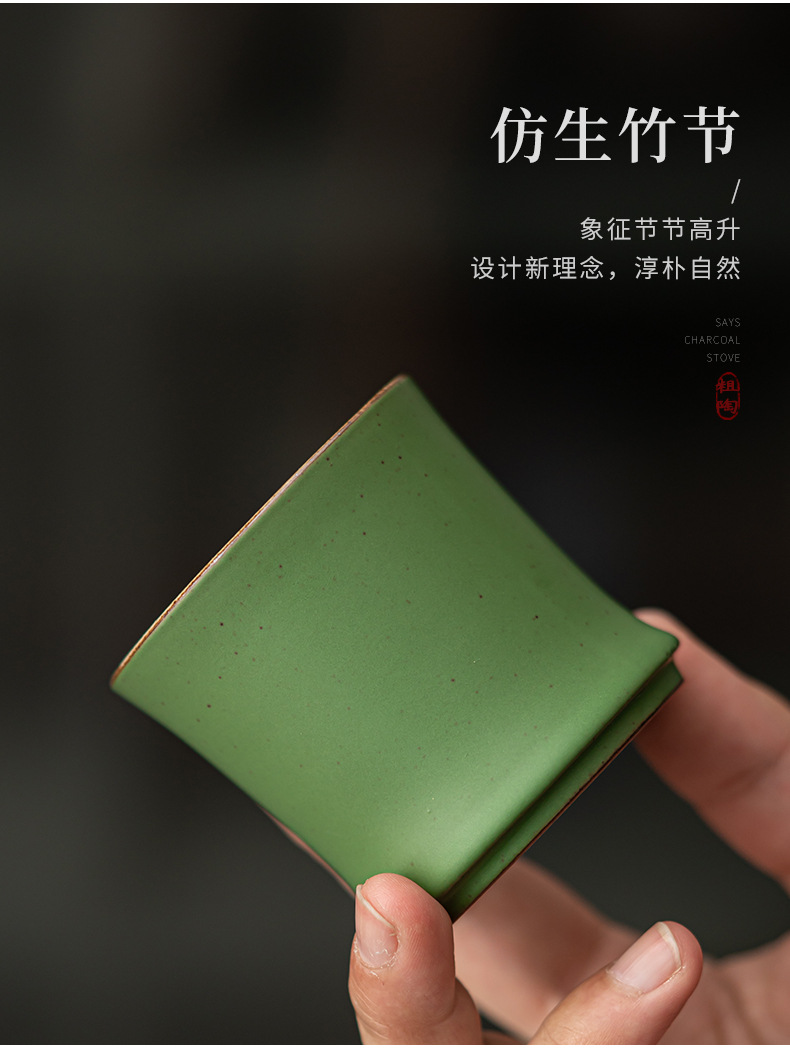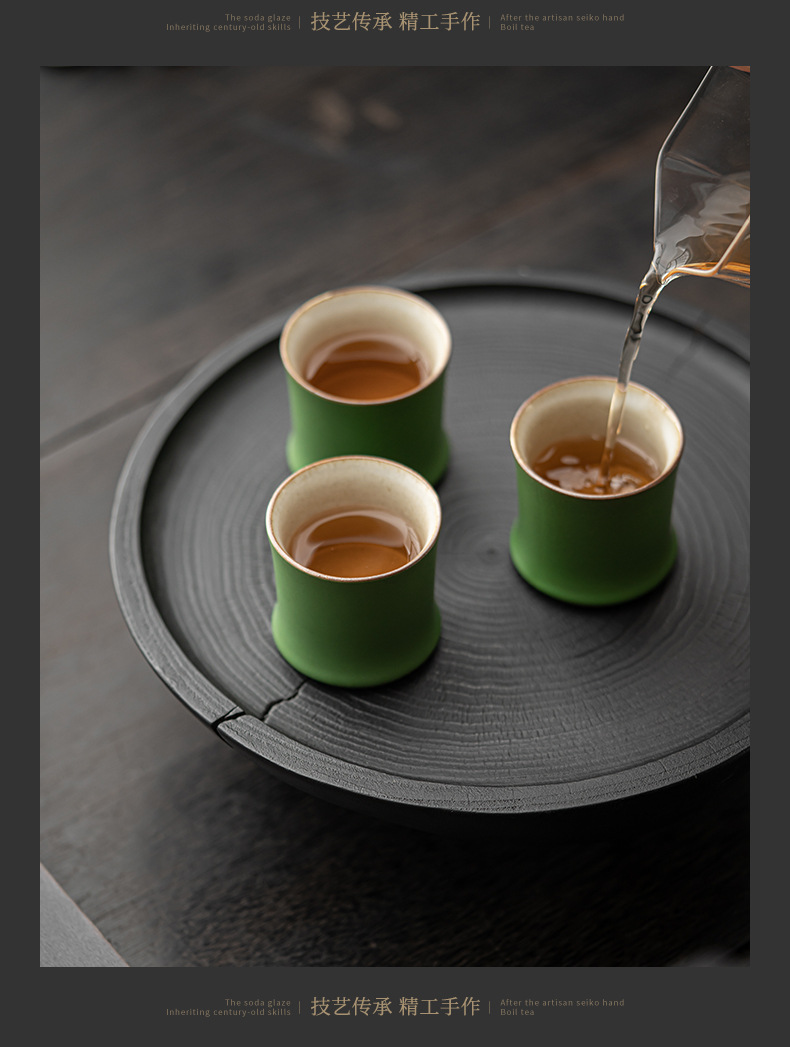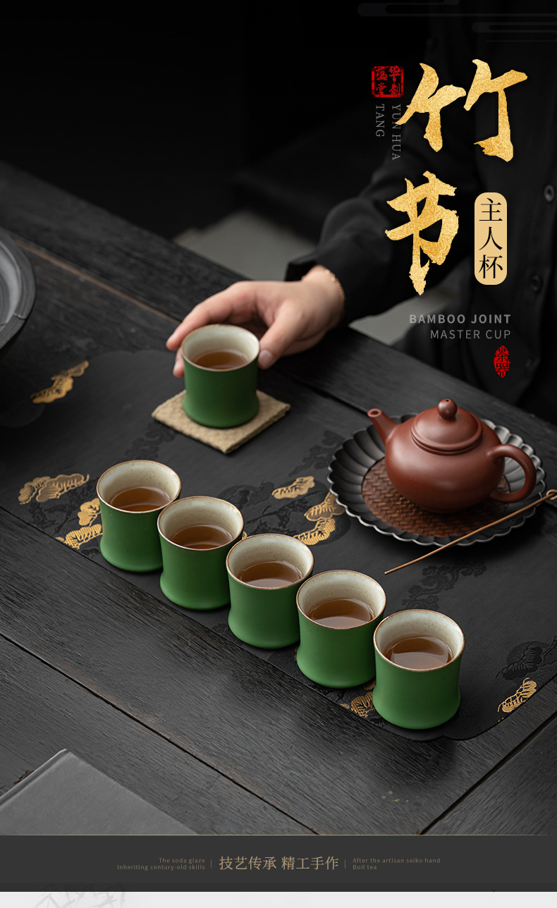 creative imitation green bamboo joint kung fu tea set teacup porcelain tea tasting cup master cup household landscape bamboo joint cup sets