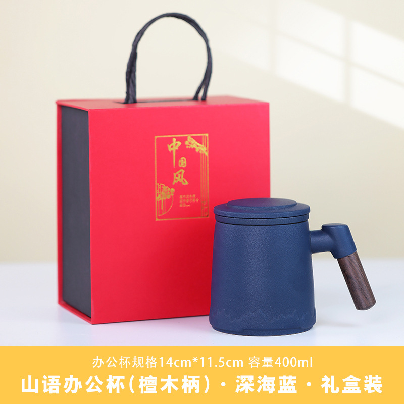 茶水分离杯茶杯陶瓷杯子高颜值泡茶杯办公马克杯带盖节庆礼品批发