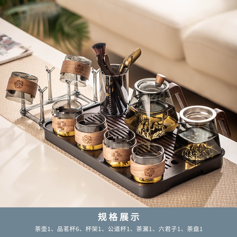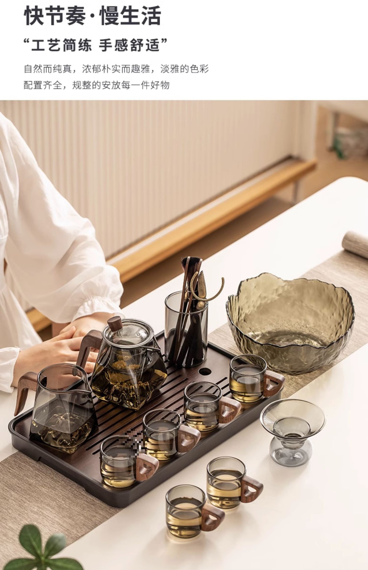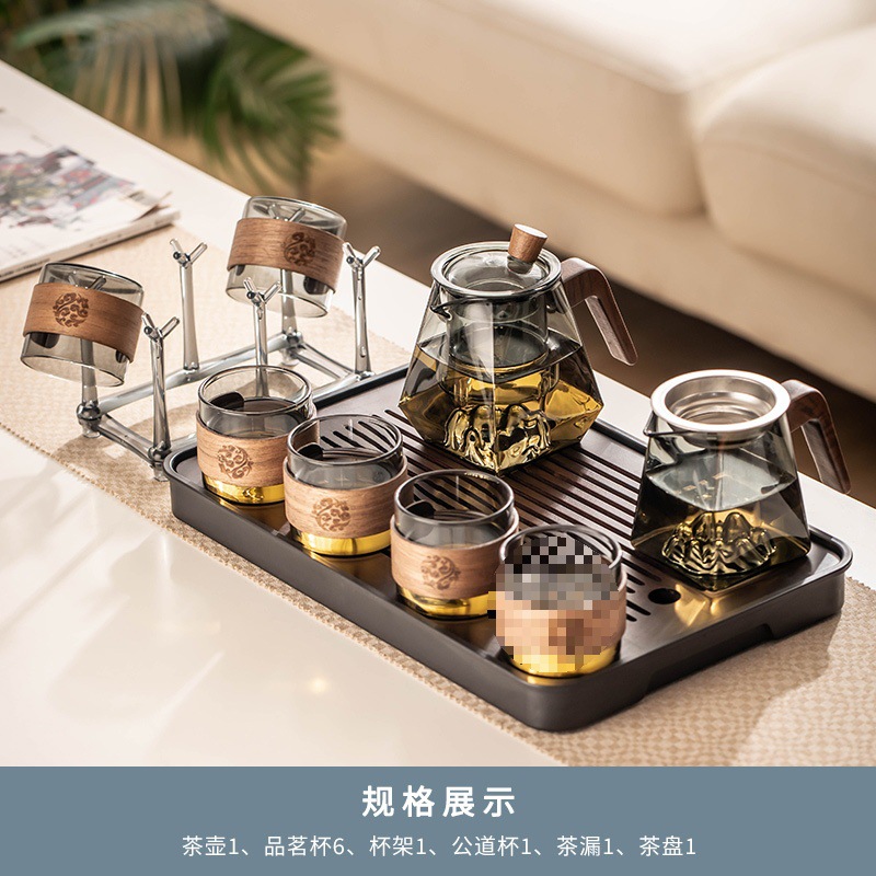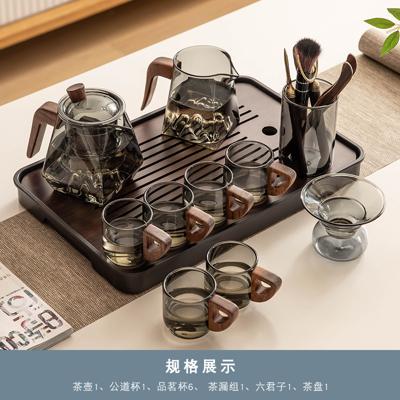 家用客厅泡茶壶茶盘2024新款玻璃茶具套装办公室会客喝茶防烫茶杯