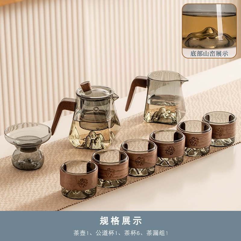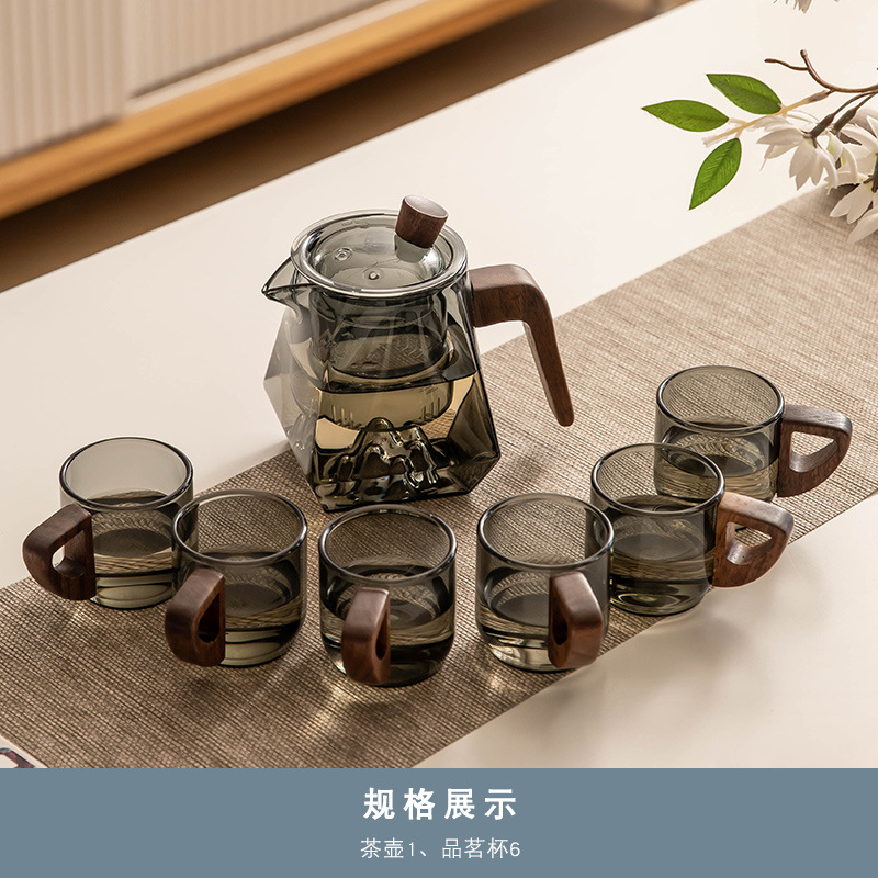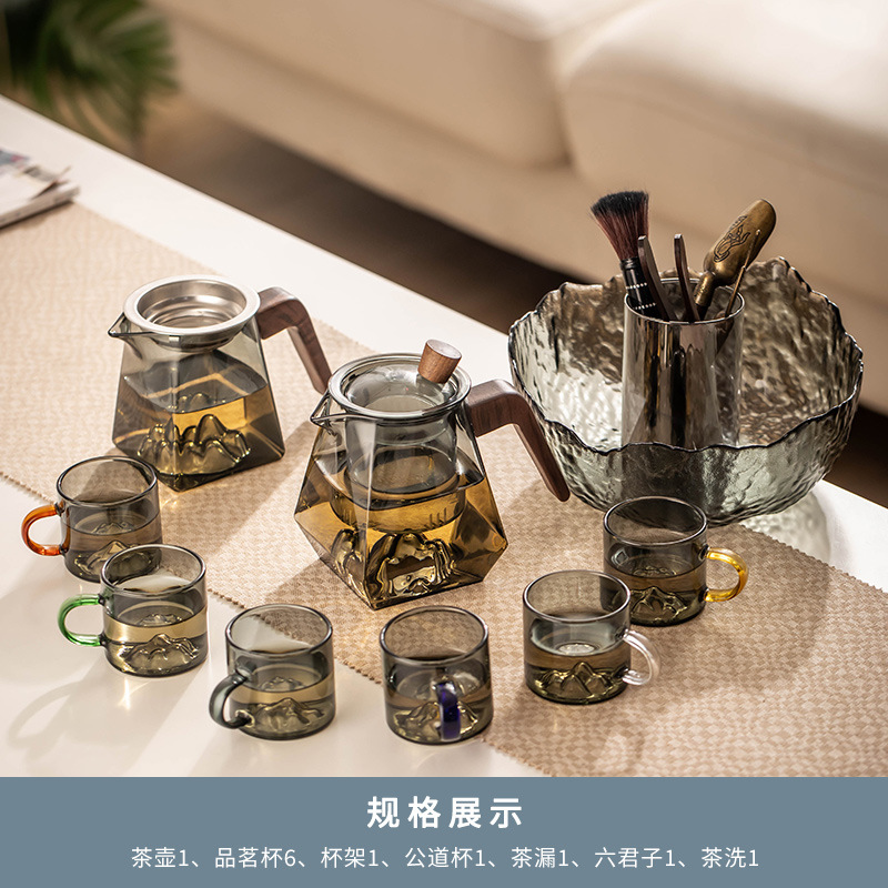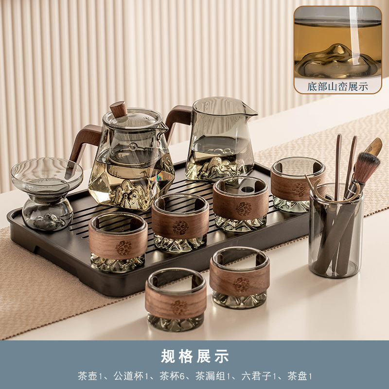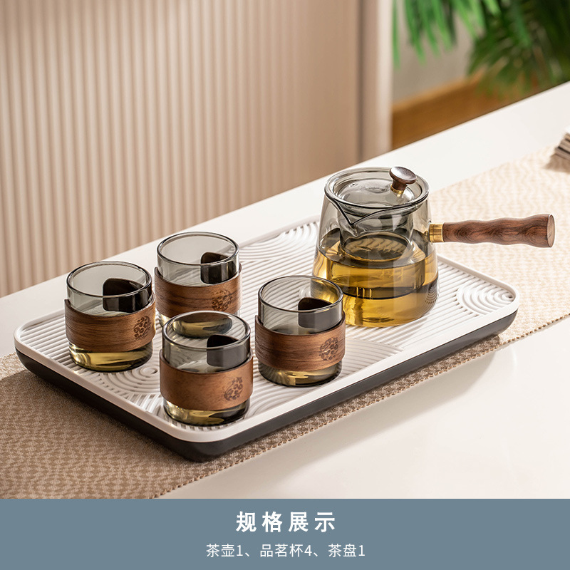 家用客厅泡茶壶茶盘2024新款玻璃茶具套装办公室会客喝茶防烫茶杯
