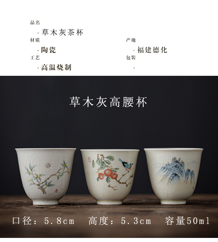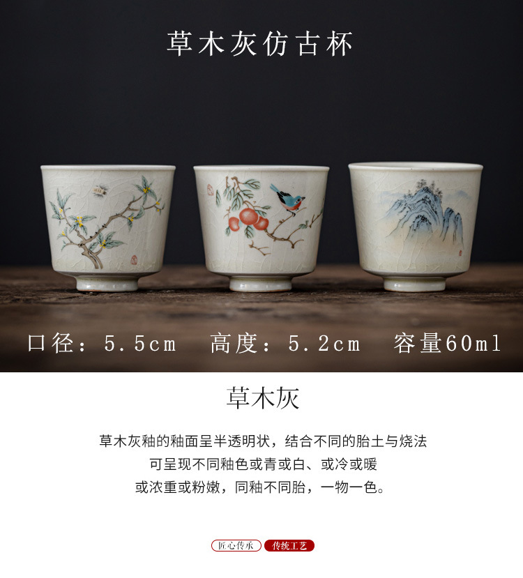 拾念 草木灰开片小茶杯单只陶瓷功夫茶主人杯复古品茗杯茶具