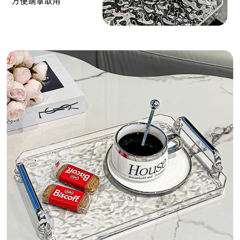 水波纹轻奢高档托盘长方形家用放杯子茶杯水杯酒杯茶盘美容院高级