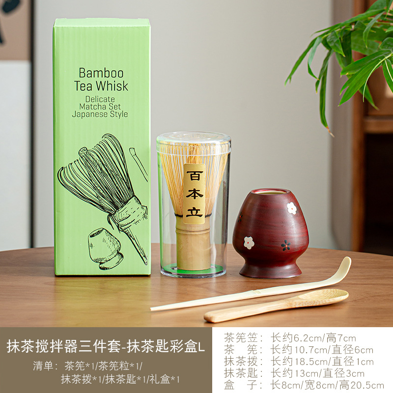 跨境新款日式抹茶器套装百本立打蛋器工具茶筅茶刷宋代点茶用具