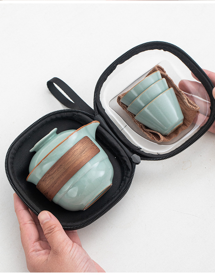 黄汝窑旅行茶具便携小套商务小礼品开业会议活动纪念品送客户