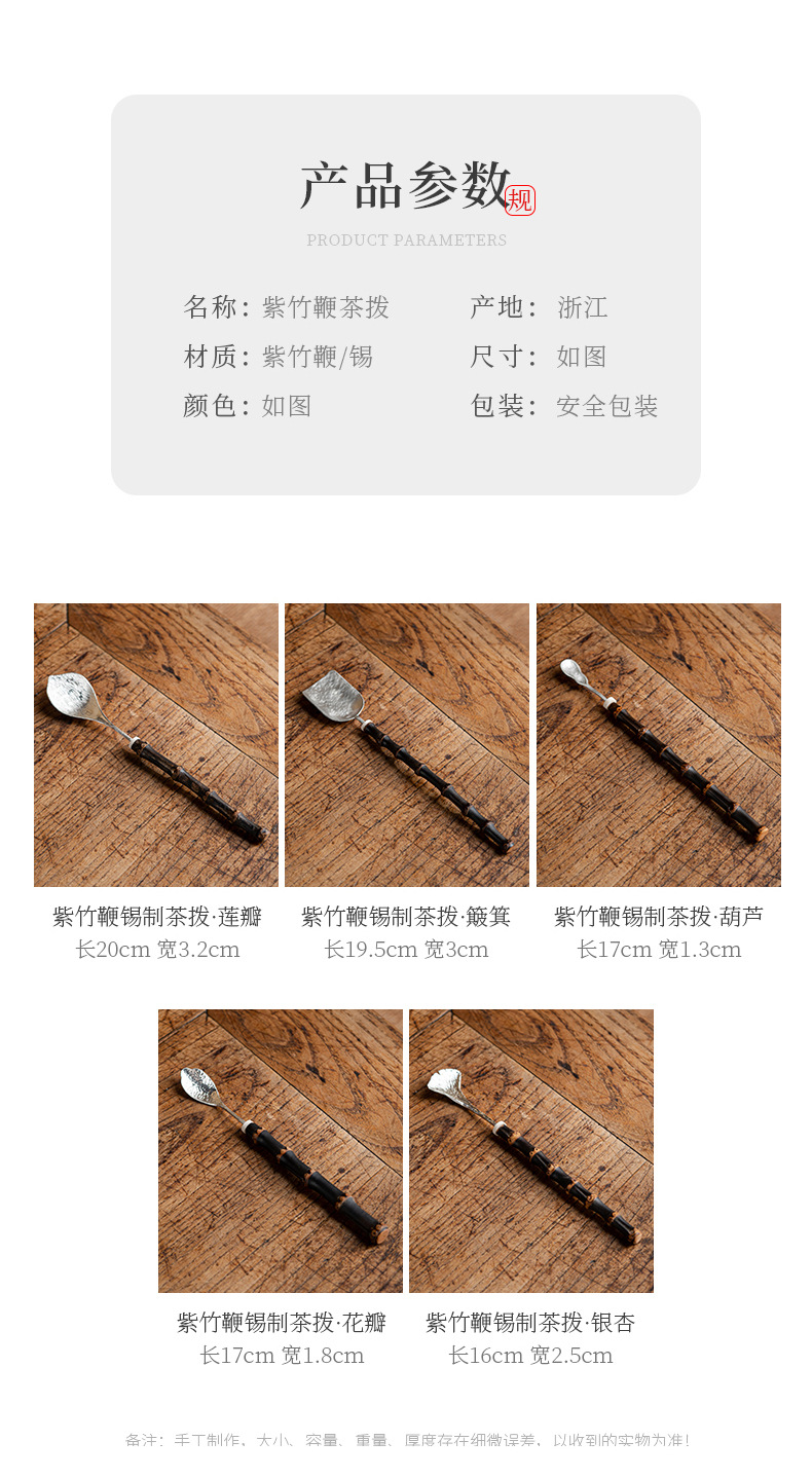 紫竹纯锡茶铲茶叶取茶勺单只茶匙茶拨喝茶功夫茶具配件茶艺六君子