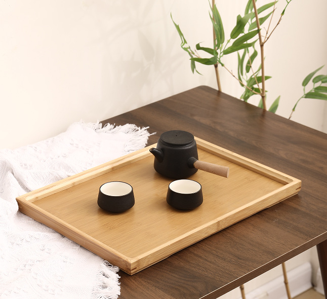 活动跨境家用茶具竹木托盘长方形茶盘水杯托盘日式木质面包木餐盘